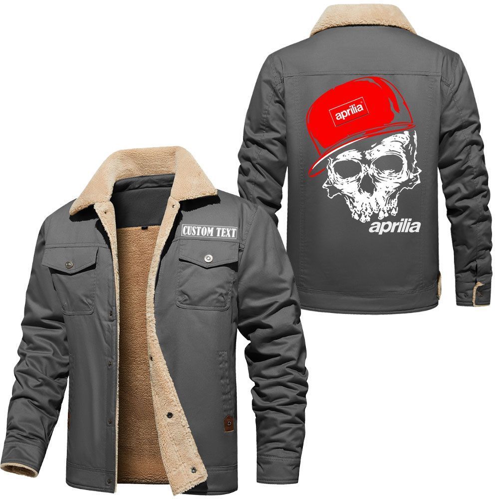 Aprilia Logo Custom Name Cargo Fleece Lined Cotton Jacket Personalized Outerwear with Skull Design