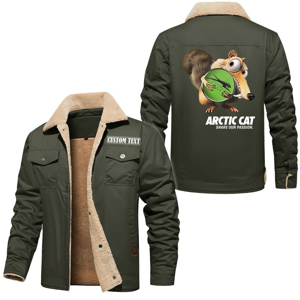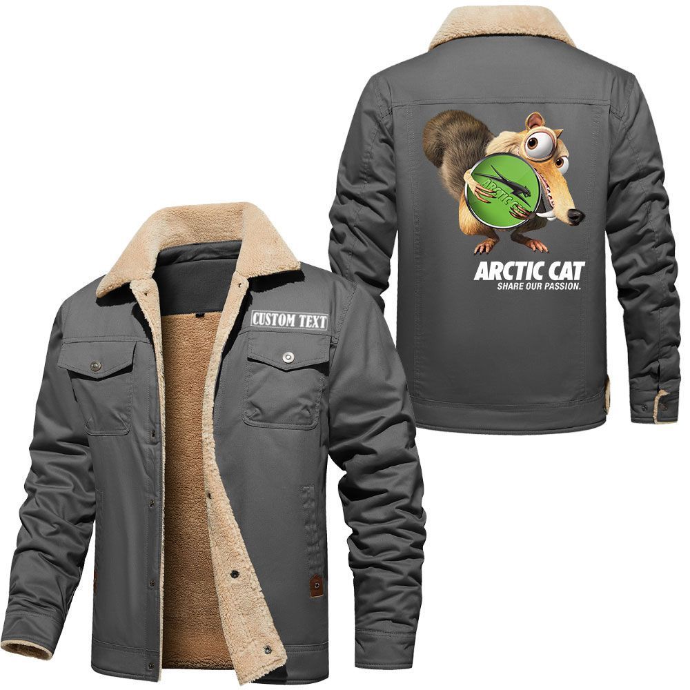 Arctic cat Logo Custom Name Cargo Fleece Lined Cotton Jacket Scrat Ice Age Design Personalized Outerwear