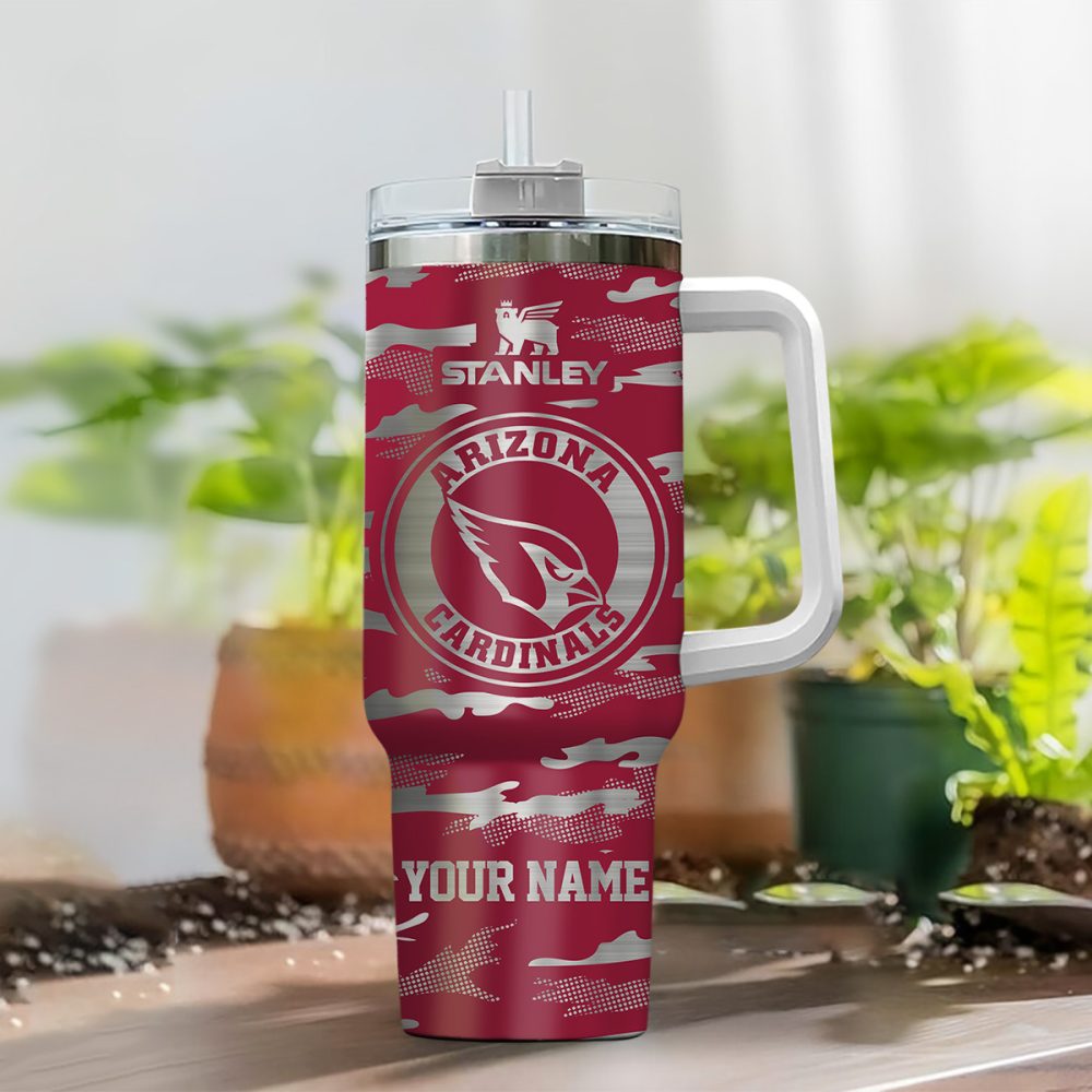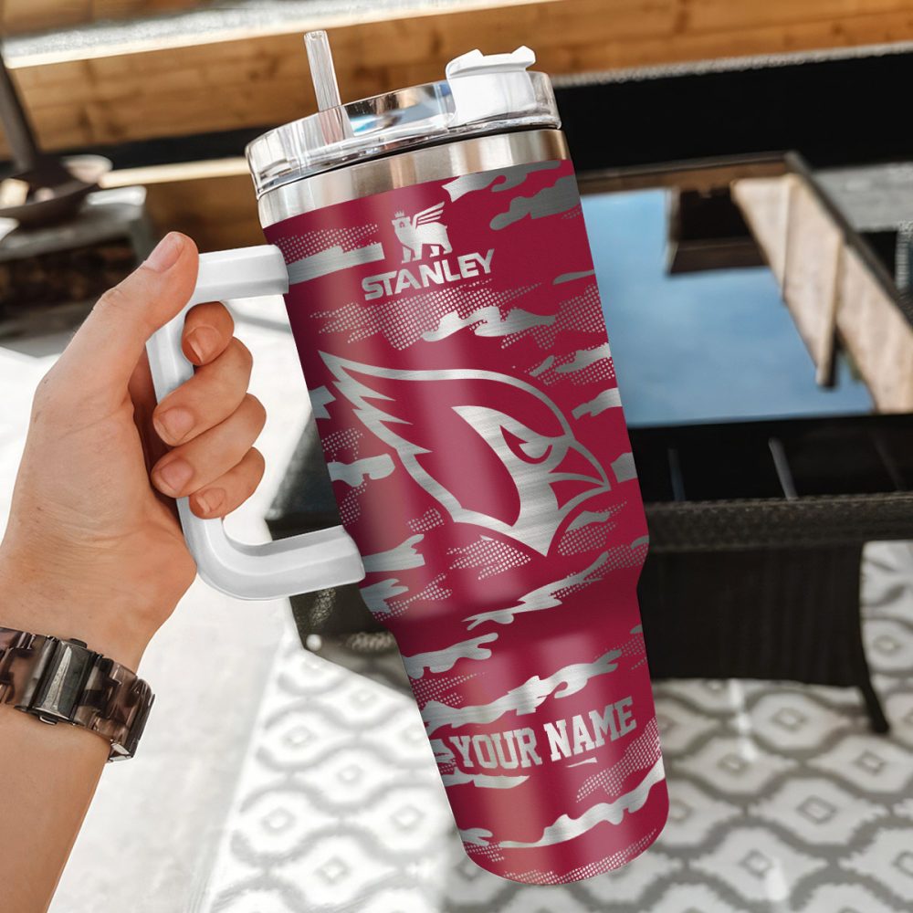 Arizona Cardinals Nfl Camo Pattern Custom Stanley Quencher 40Oz Stainless Steel Tumbler With Handle