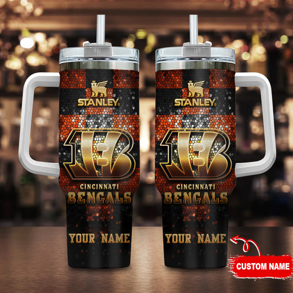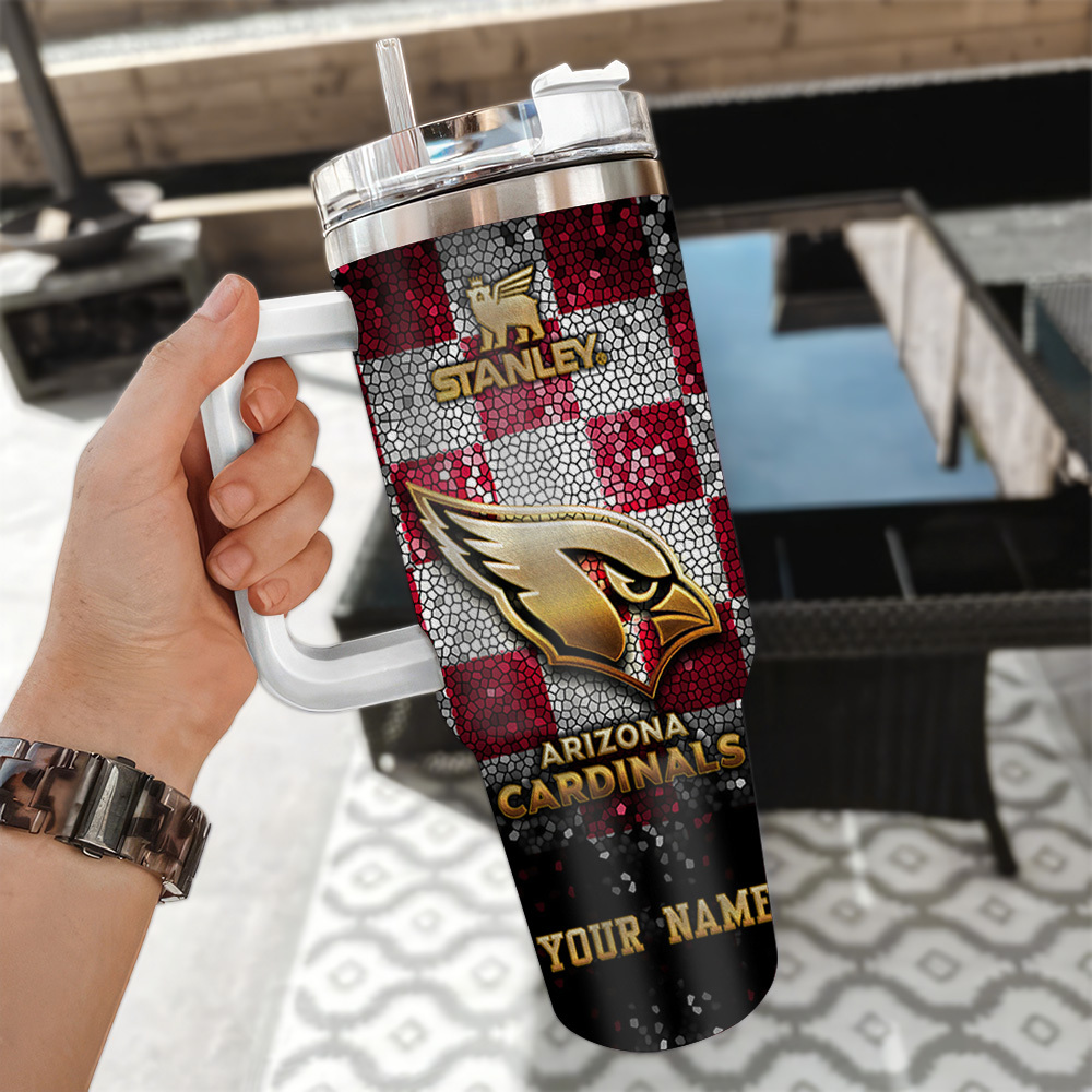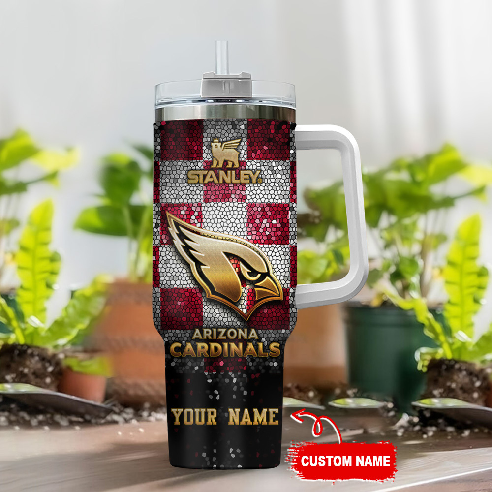 Arizona Cardinals Nfl Glitter Golden Logo Custom Stanley Quencher 40Oz Stainless Steel Tumbler With Handle