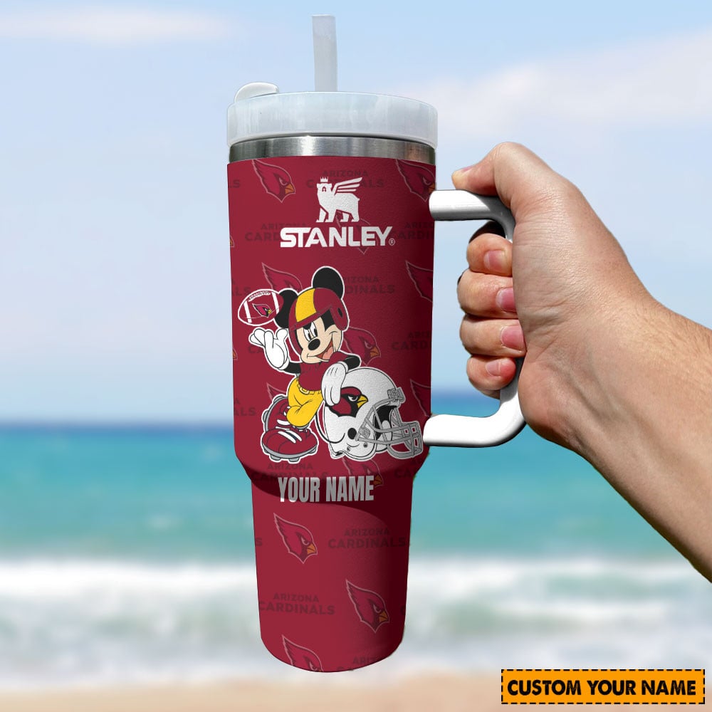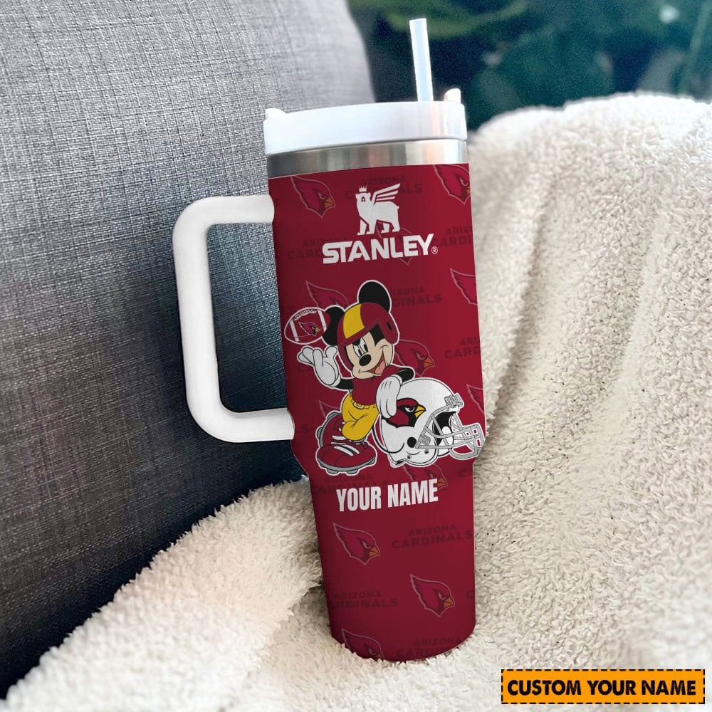 Arizona Cardinals Nfl Mickey Mouse Custom Stanley Quencher 40Oz Stainless Steel Tumbler With Handle