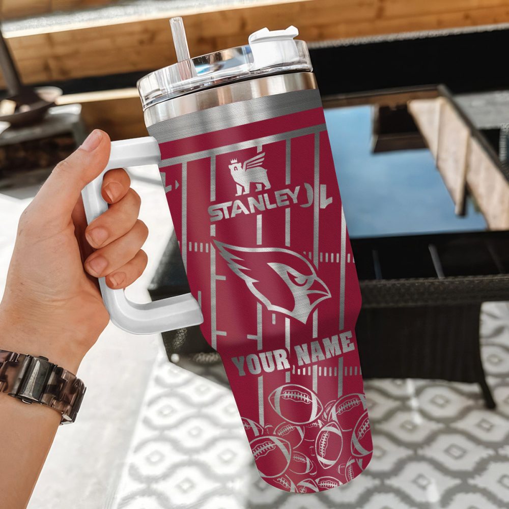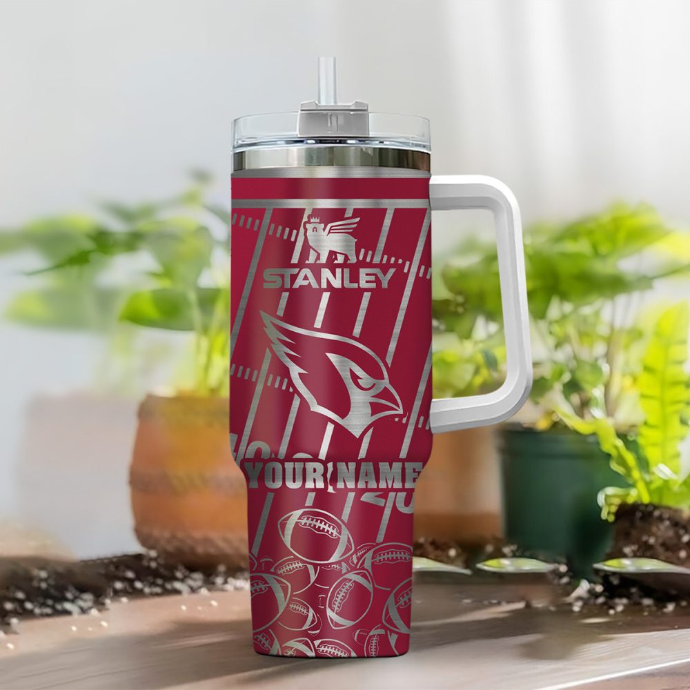 Arizona Cardinals Nfl Silver Custom Stanley Quencher 40Oz Stainless Steel Tumbler With Handle