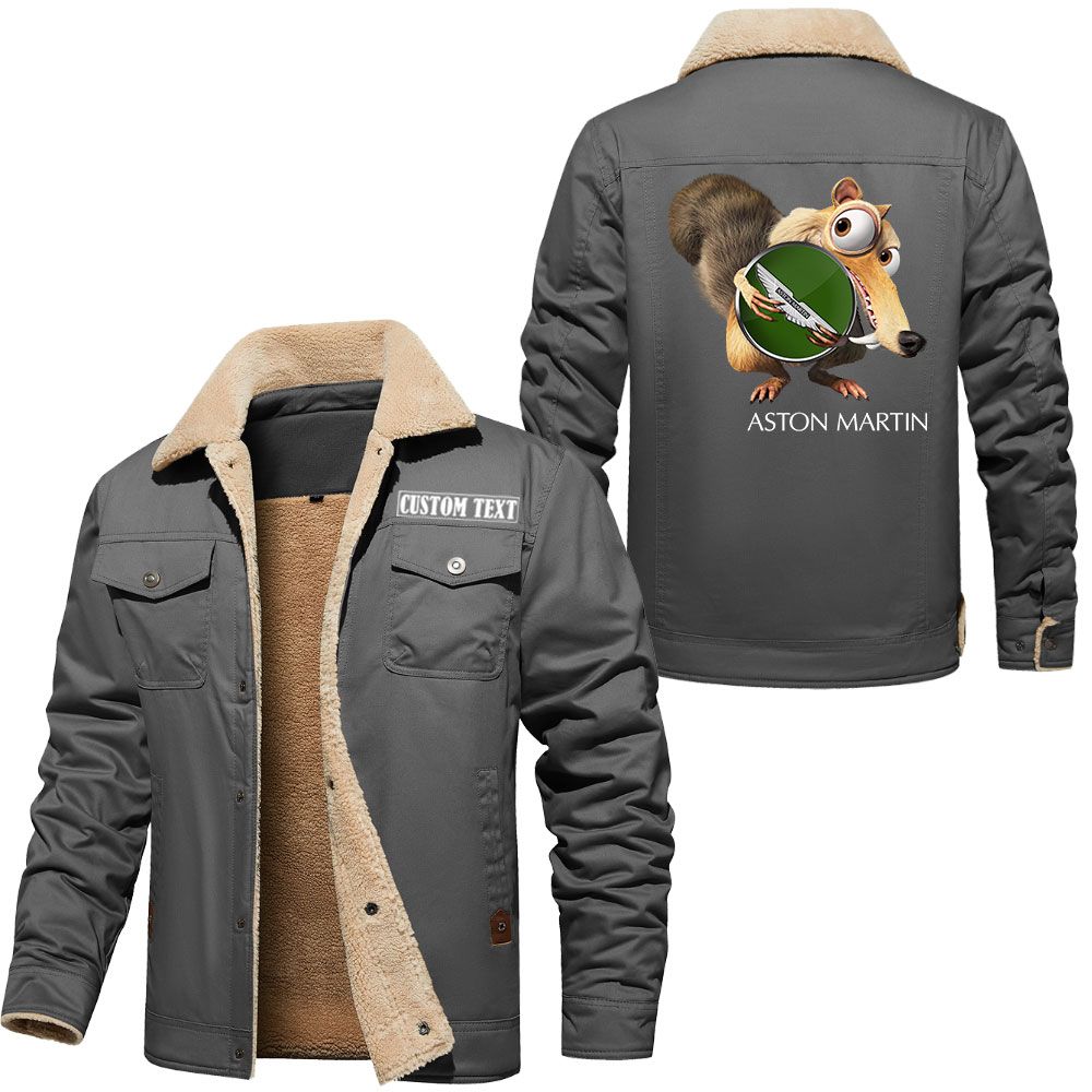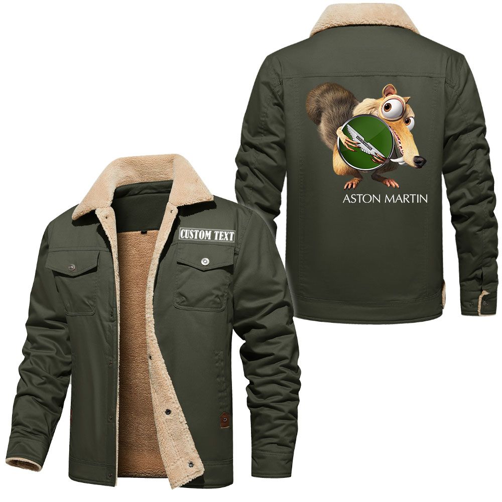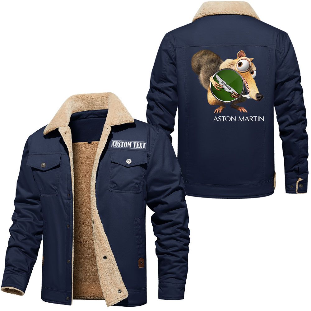 Aston Martin Logo Custom Name Cargo Fleece Lined Cotton Jacket Scrat Ice Age Design Personalized Outerwear