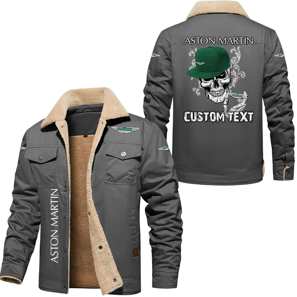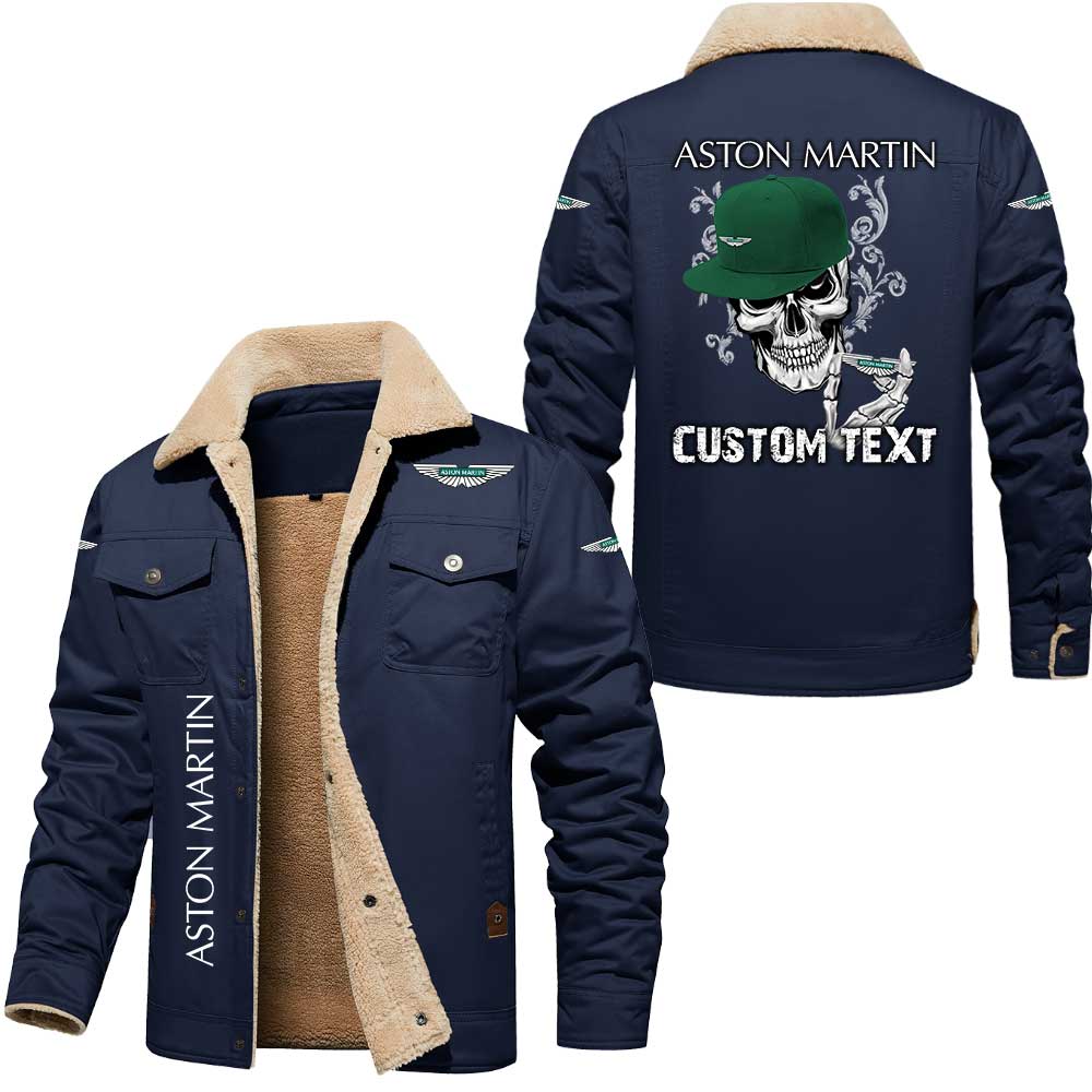 Aston Martin Skull Logo Custom Text Cargo Fleece Lined Cotton Jacket