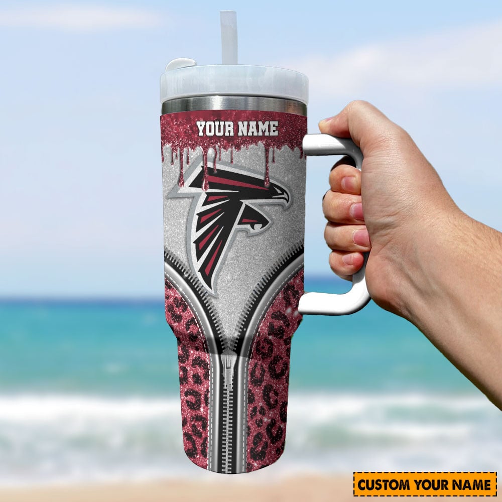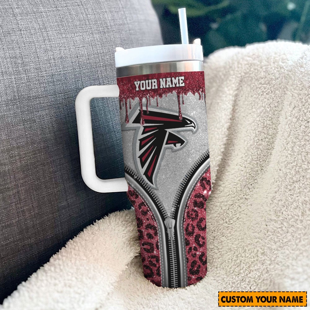Atlanta Falcons Nfl Glitter Leopard Print Custom Stanley Quencher 40Oz Stainless Steel Tumbler With Handle
