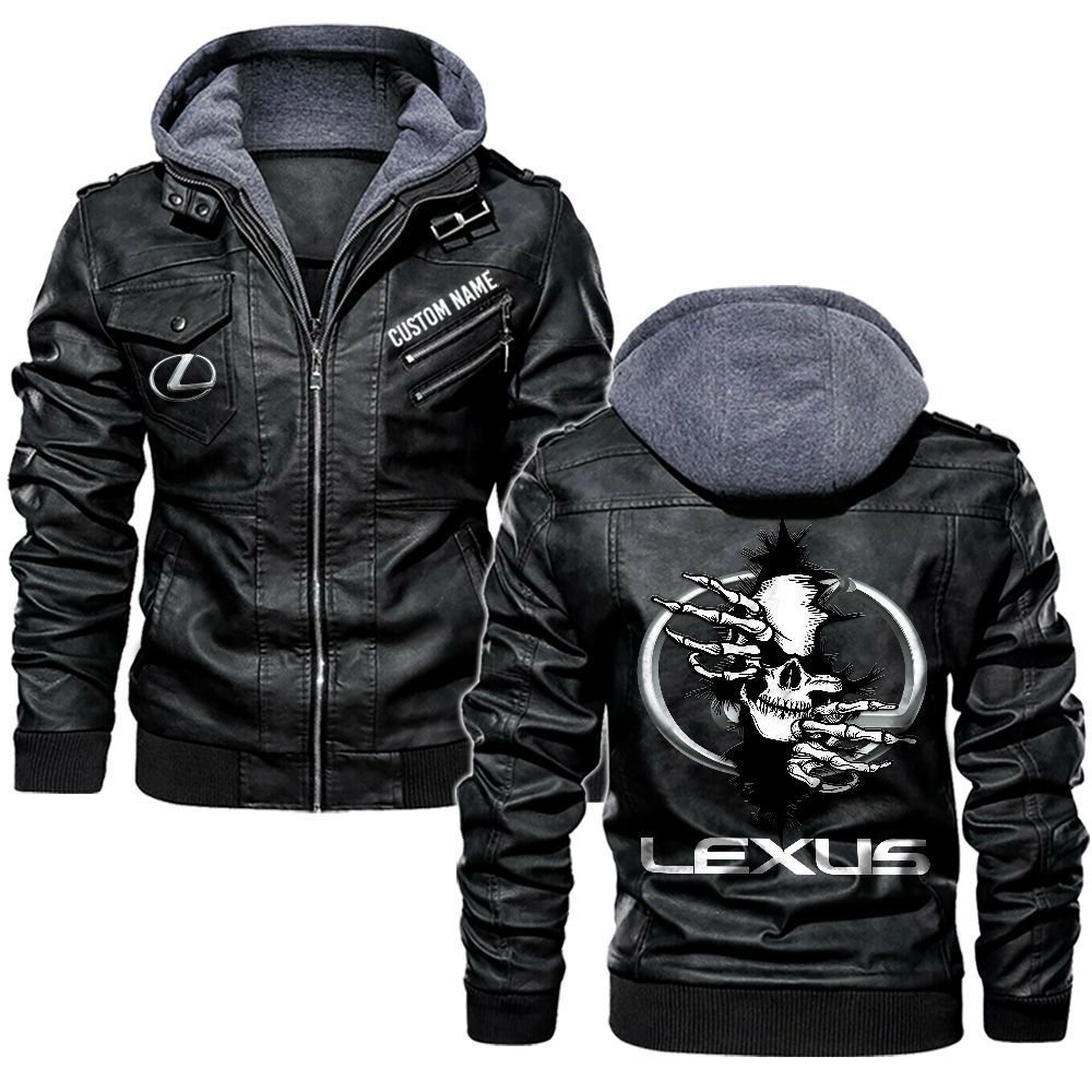 Audi Custom Name Skull Biker Car Driver Personalized Hooded Leather Jacket For Men Women