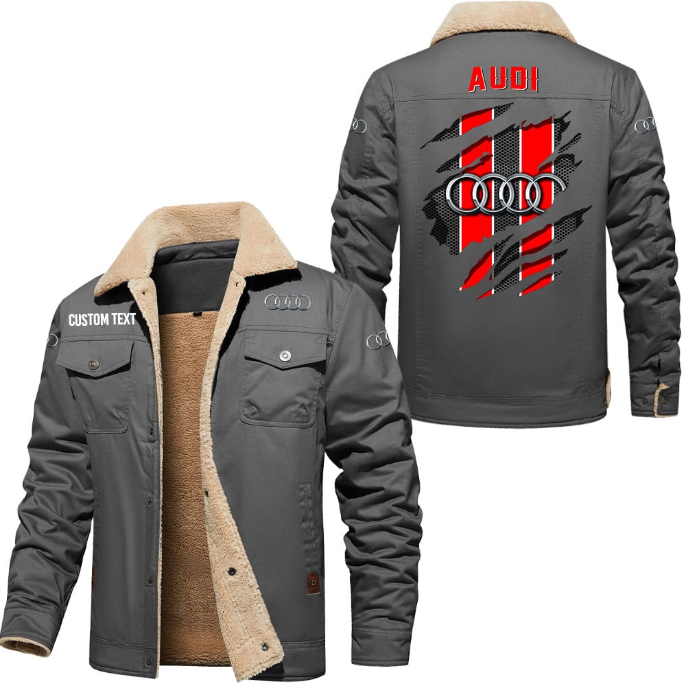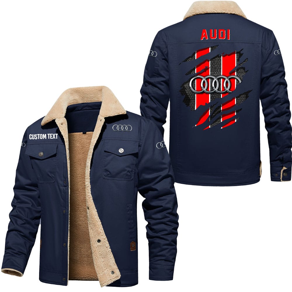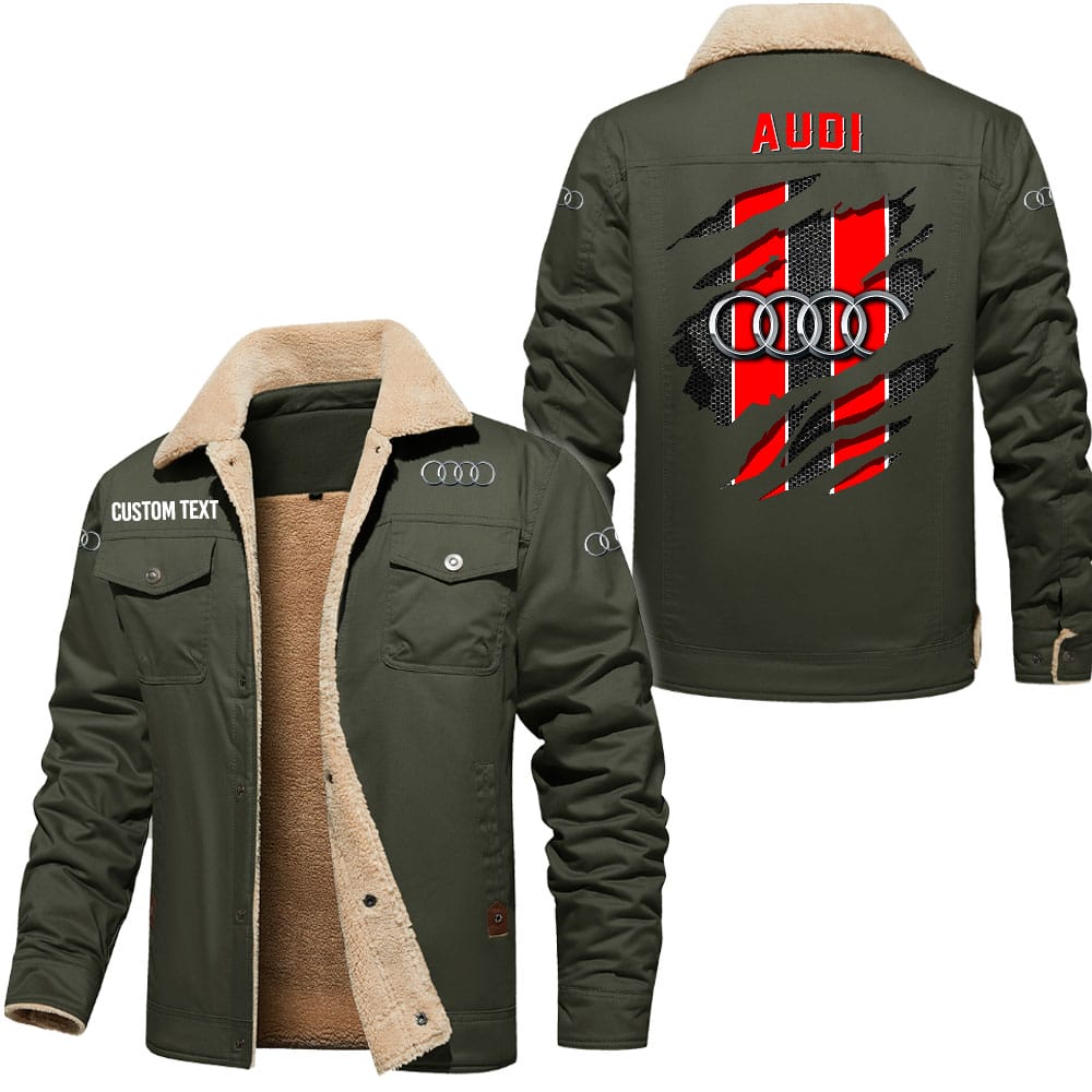 Audi Logo Custom Name Cargo Fleece Lined Cotton Jacket