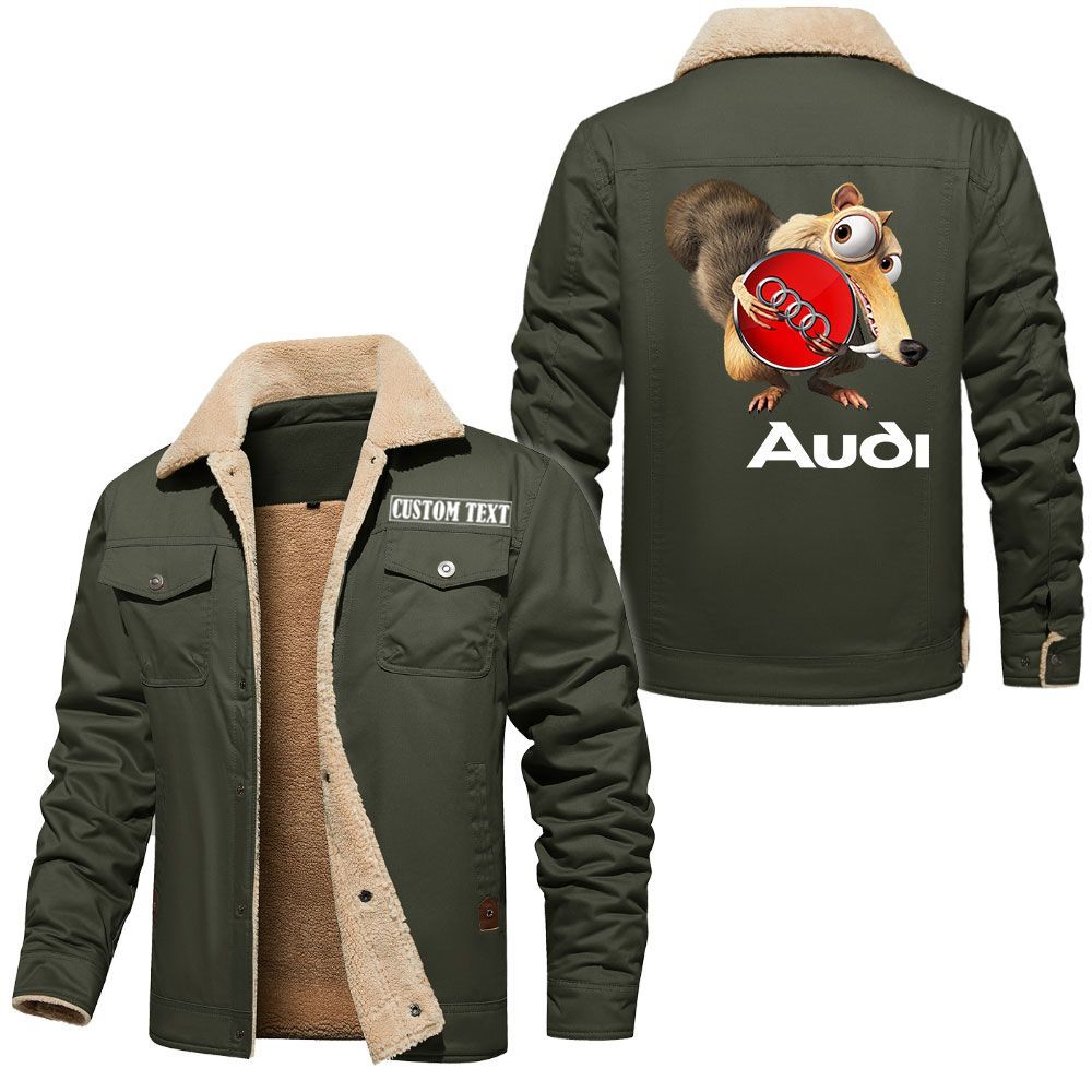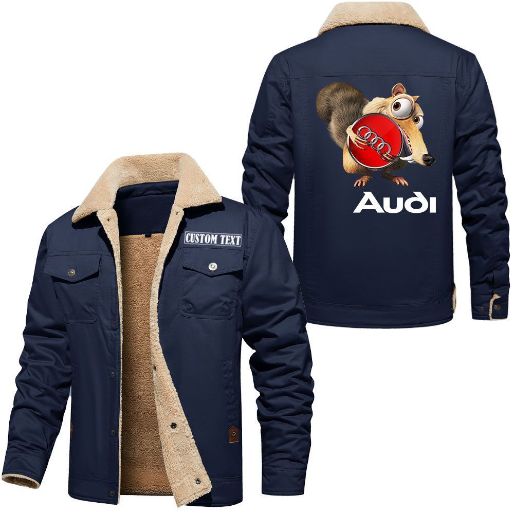 Audi Logo Custom Name Cargo Fleece Lined Cotton Jacket Scrat Ice Age Design Personalized Outerwear