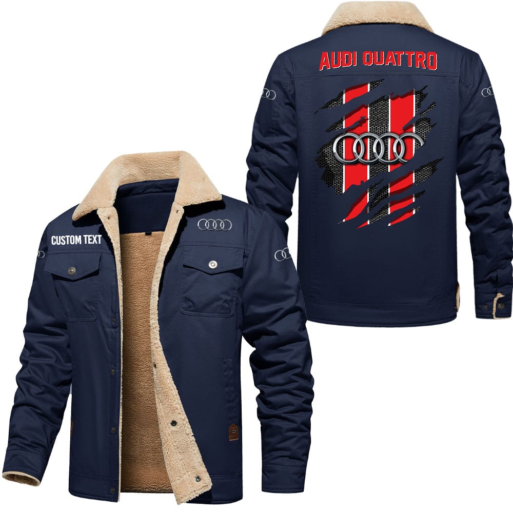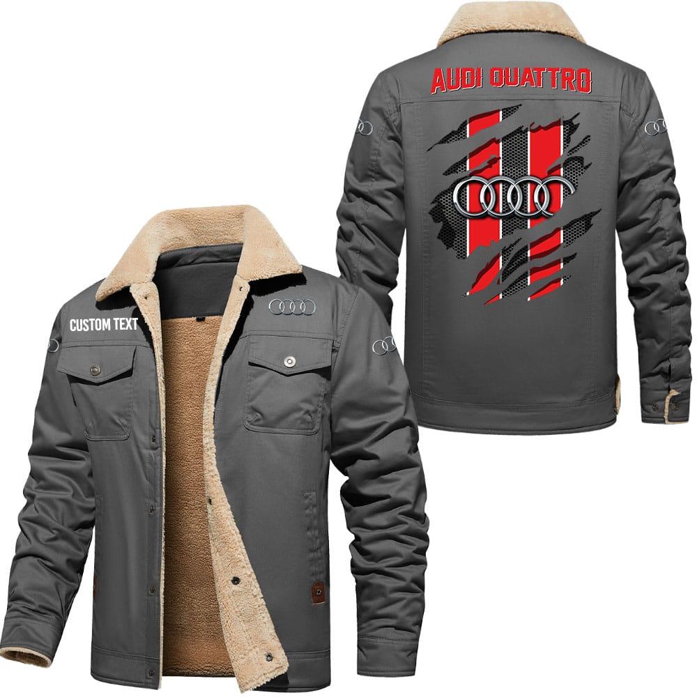 Audi Quattro Logo Custom Name Cargo Fleece Lined Cotton Jacket