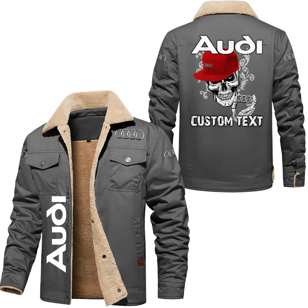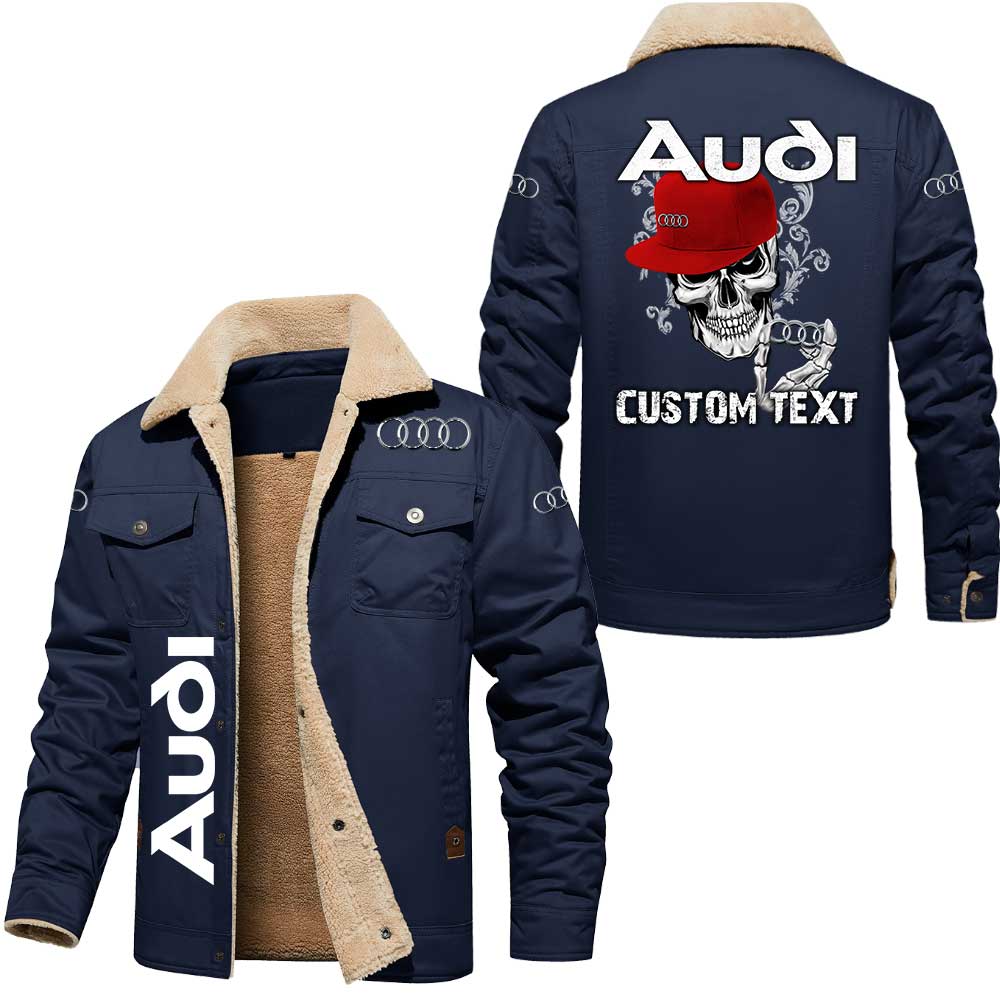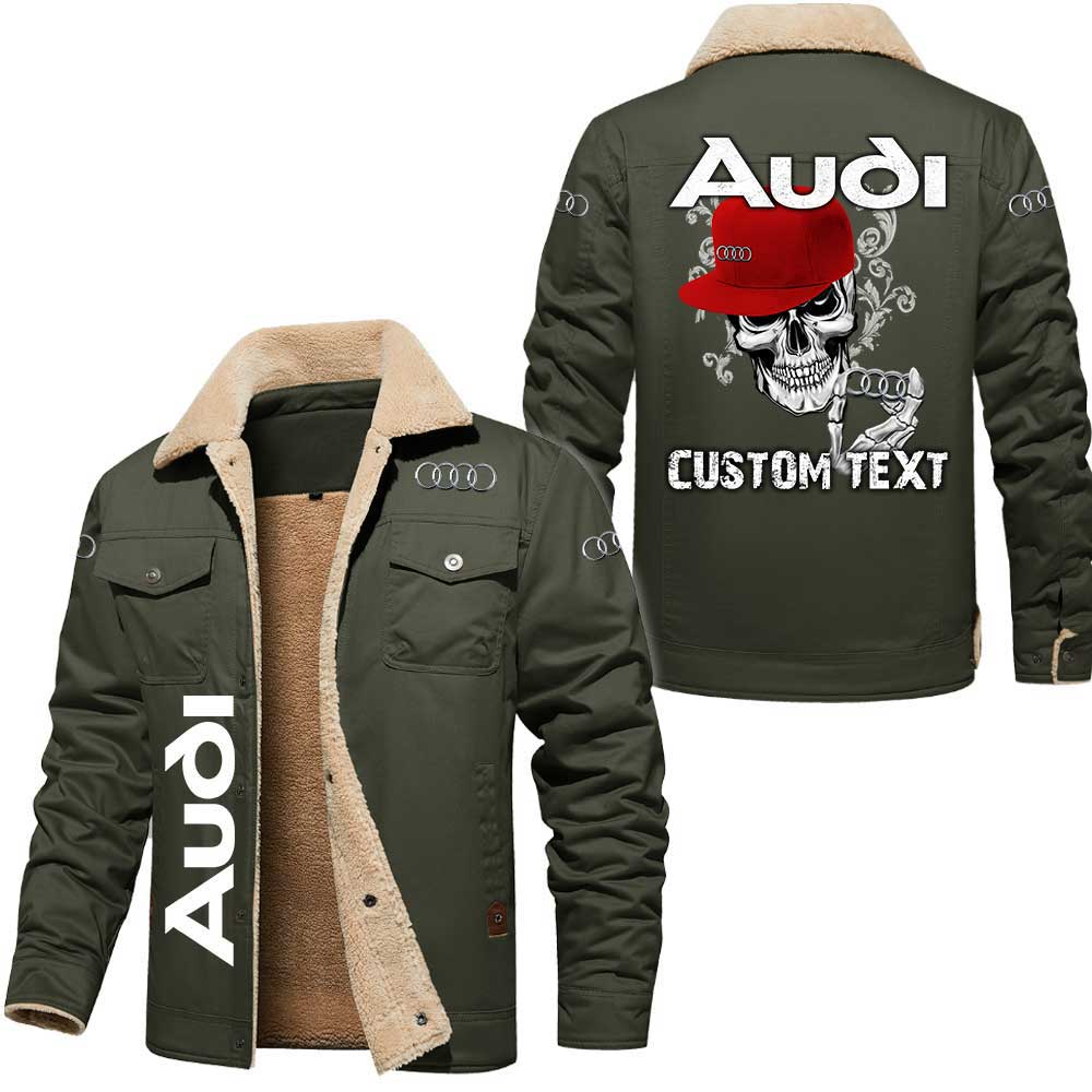 Audi Skull Logo Custom Text Cargo Fleece Lined Cotton Jacket