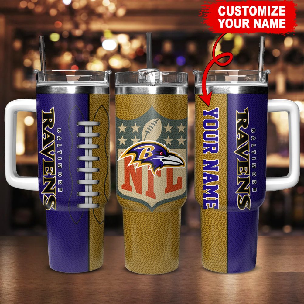 Baltimore Ravens Nfl Custom Stanley Quencher 40Oz Stainless Steel Tumbler With Handle