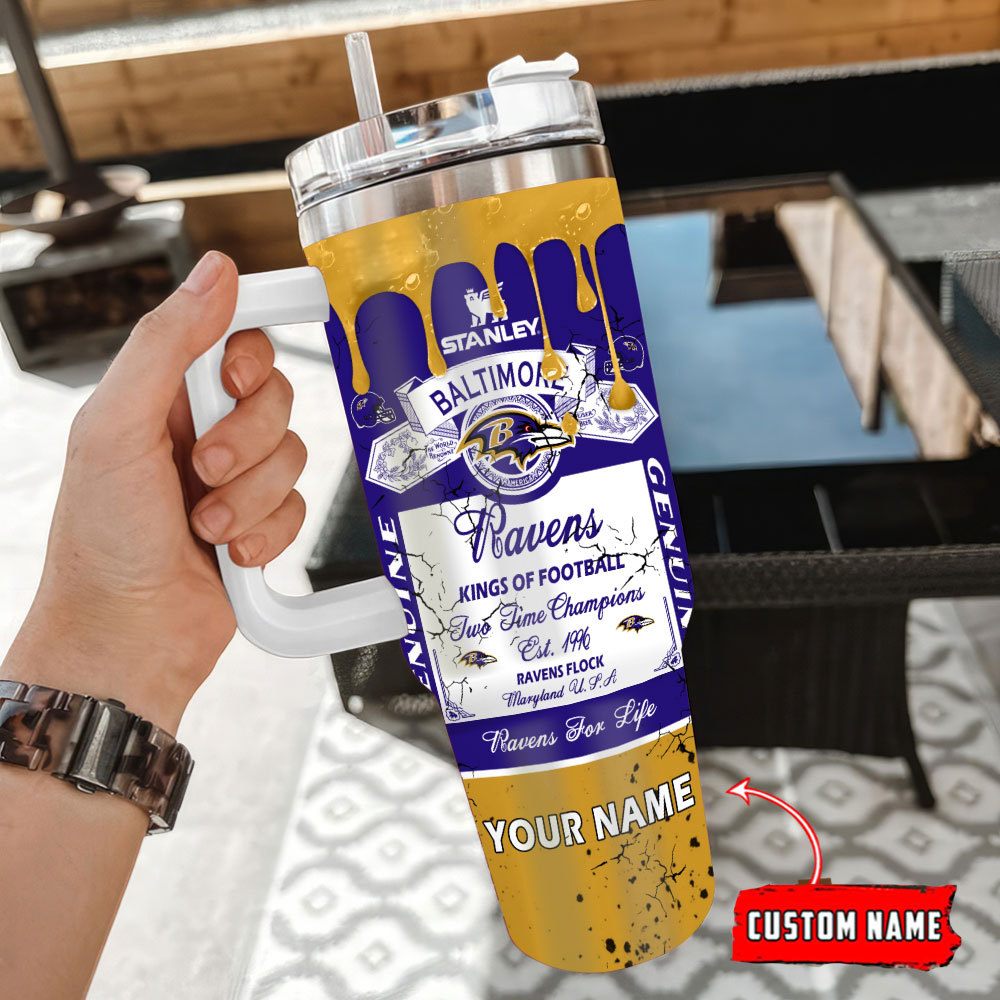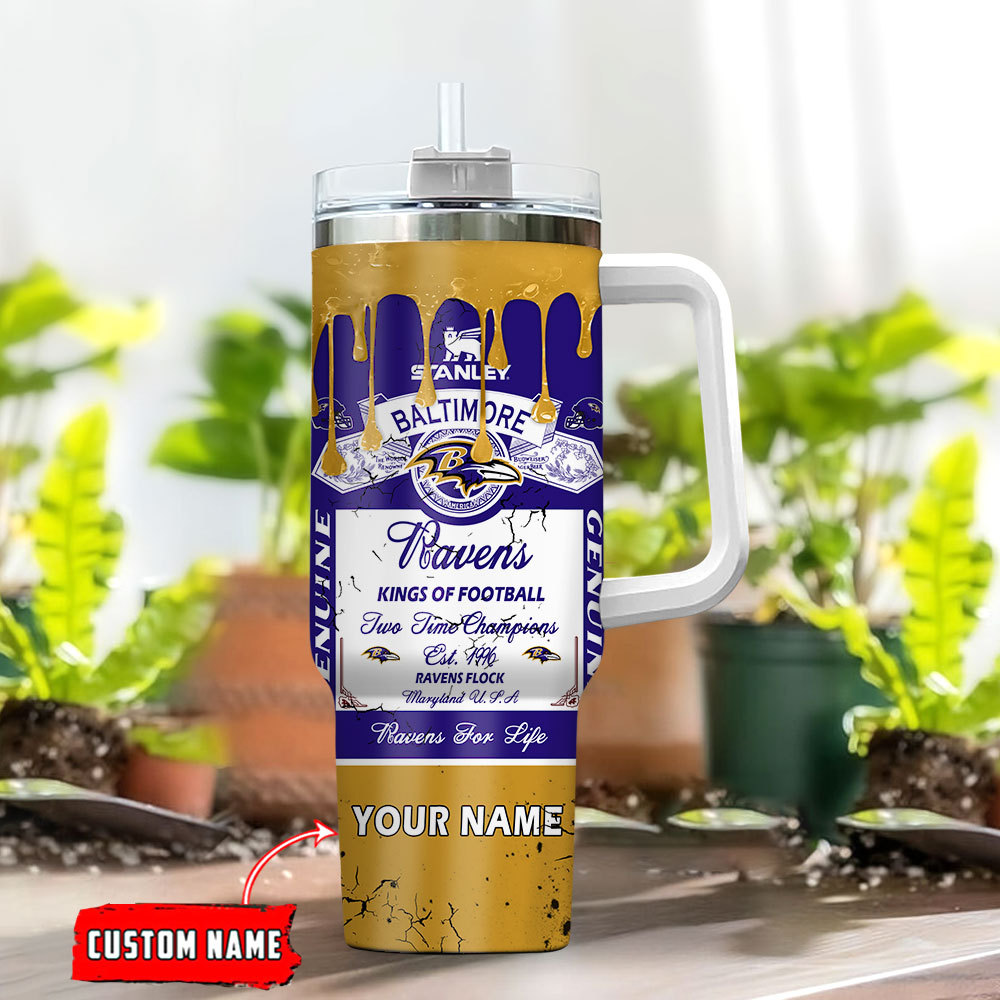 Baltimore Ravens Nfl Kings Of Football Custom Stanley Quencher 40Oz Stainless Steel Tumbler With Handle