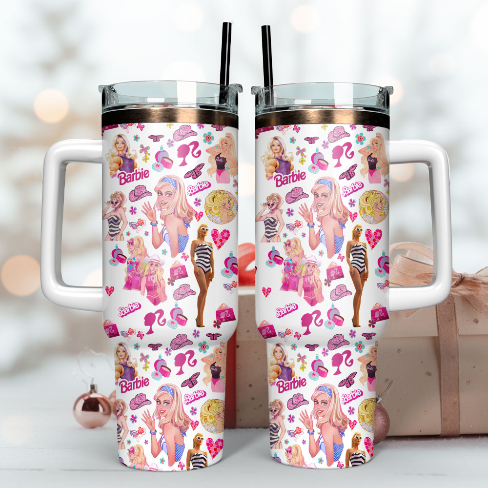 Barbie Fashion Doll Toy Custom Stanley Quencher 40Oz Stainless Steel Tumbler With Handle