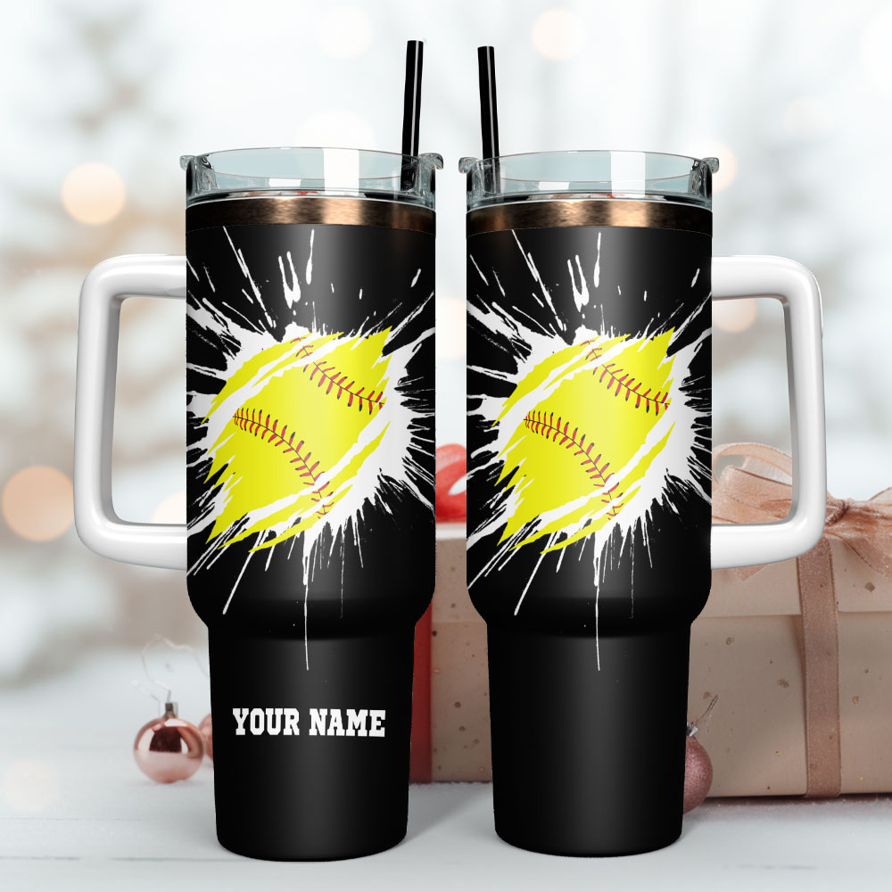 Baseball Artwork Custom Stanley Quencher 40Oz Stainless Steel Tumbler With Handle