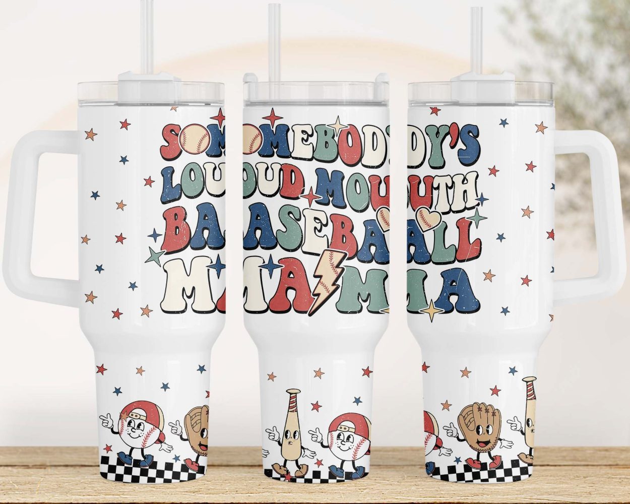 Baseball Mama Custom Stanley Quencher 40Oz Stainless Steel Tumbler With Handle