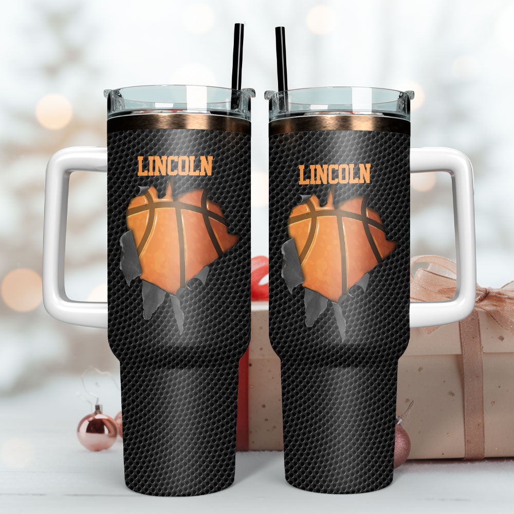 Basketball Art Custom Stanley Quencher 40Oz Stainless Steel Tumbler With Handle