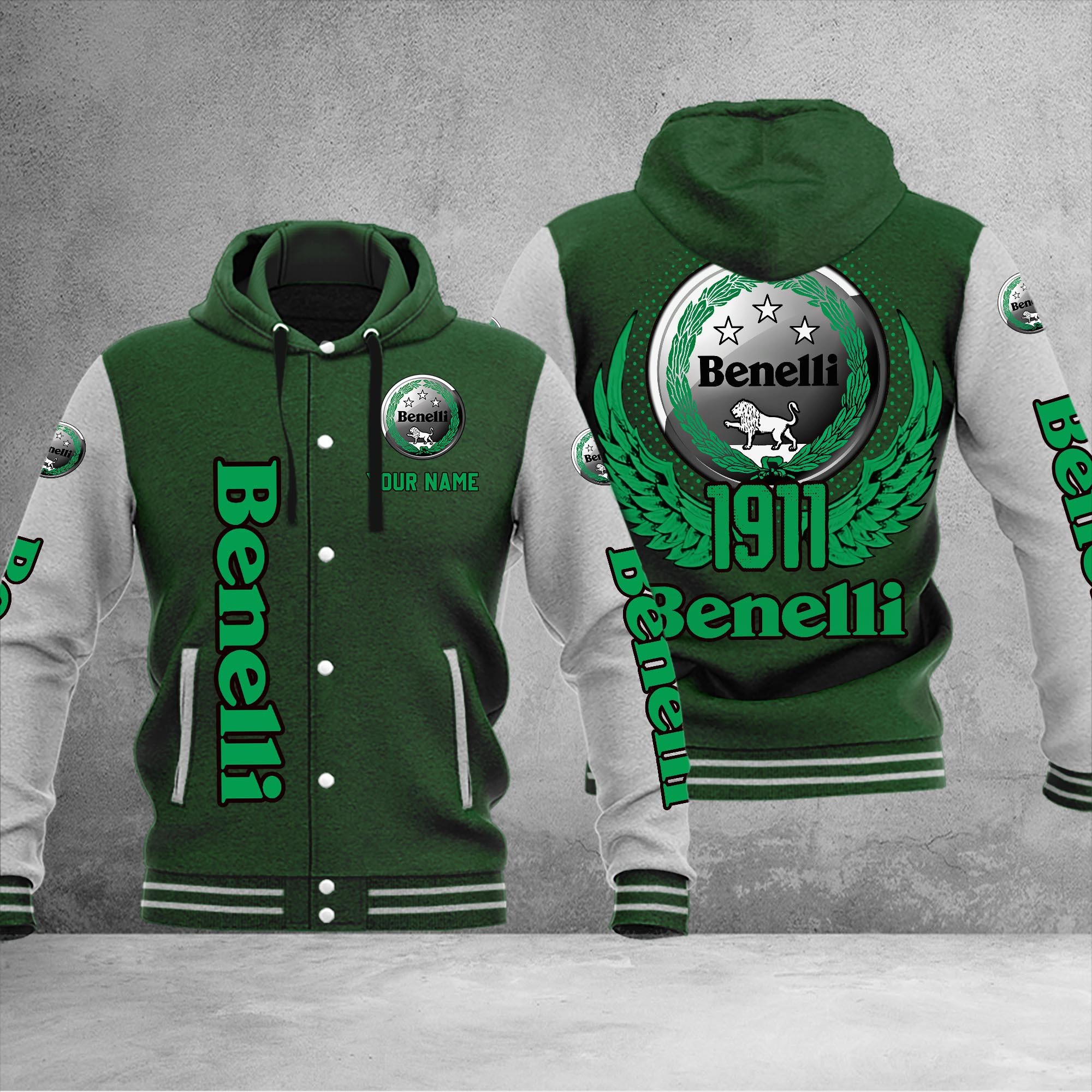 Benelli Personalized Hooded Baseball Jacket For Fans Red Black
