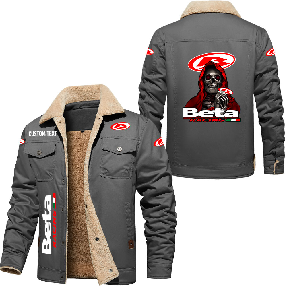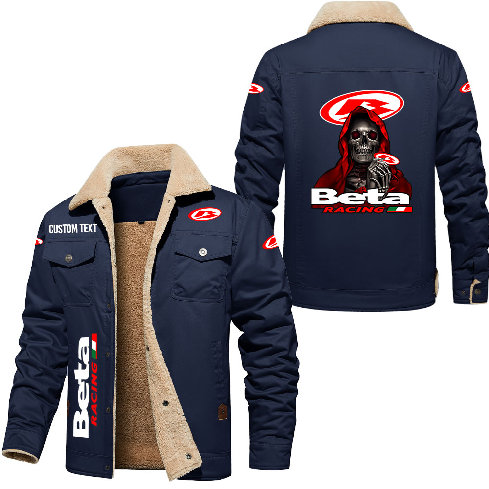 Beta Racing Skull Art Print Custom Name Cargo Fleece Lined Cotton Jacket