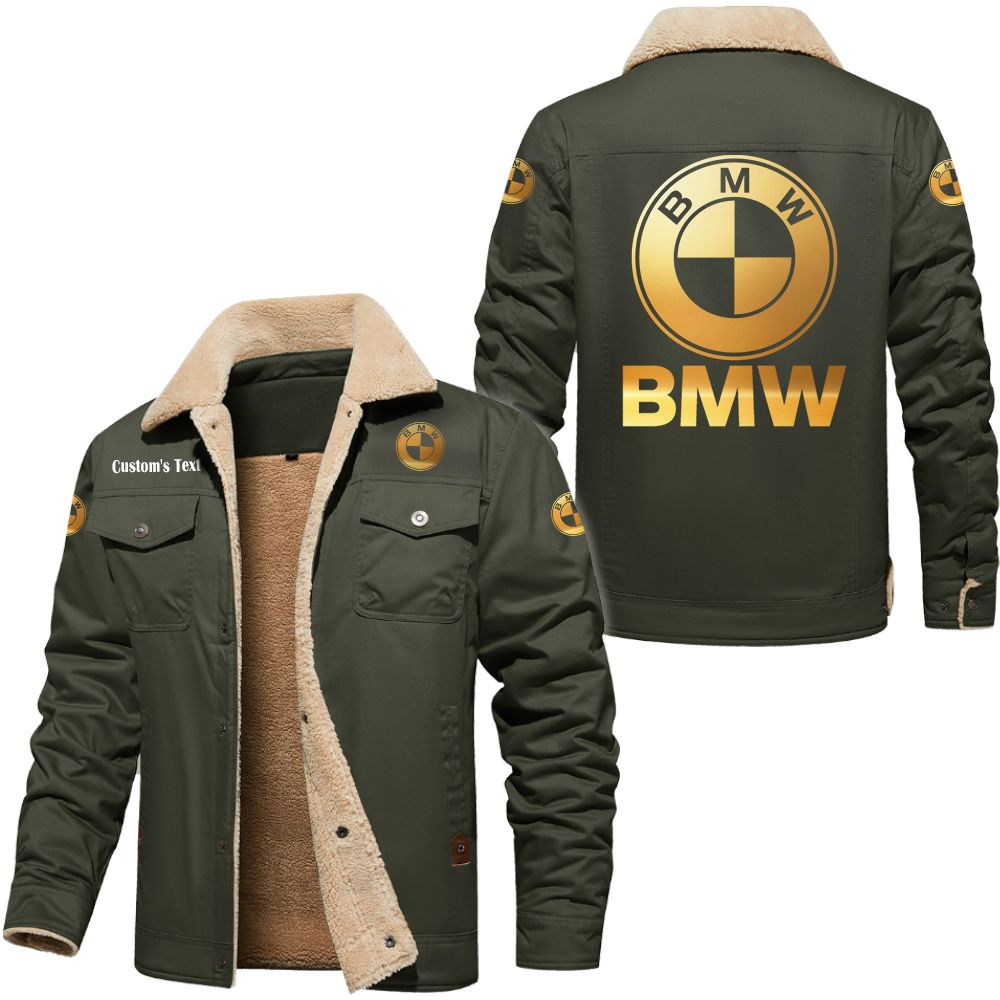 Bimota Golden Logo Custom Cargo Fleece Lined Cotton Jacket Army Green