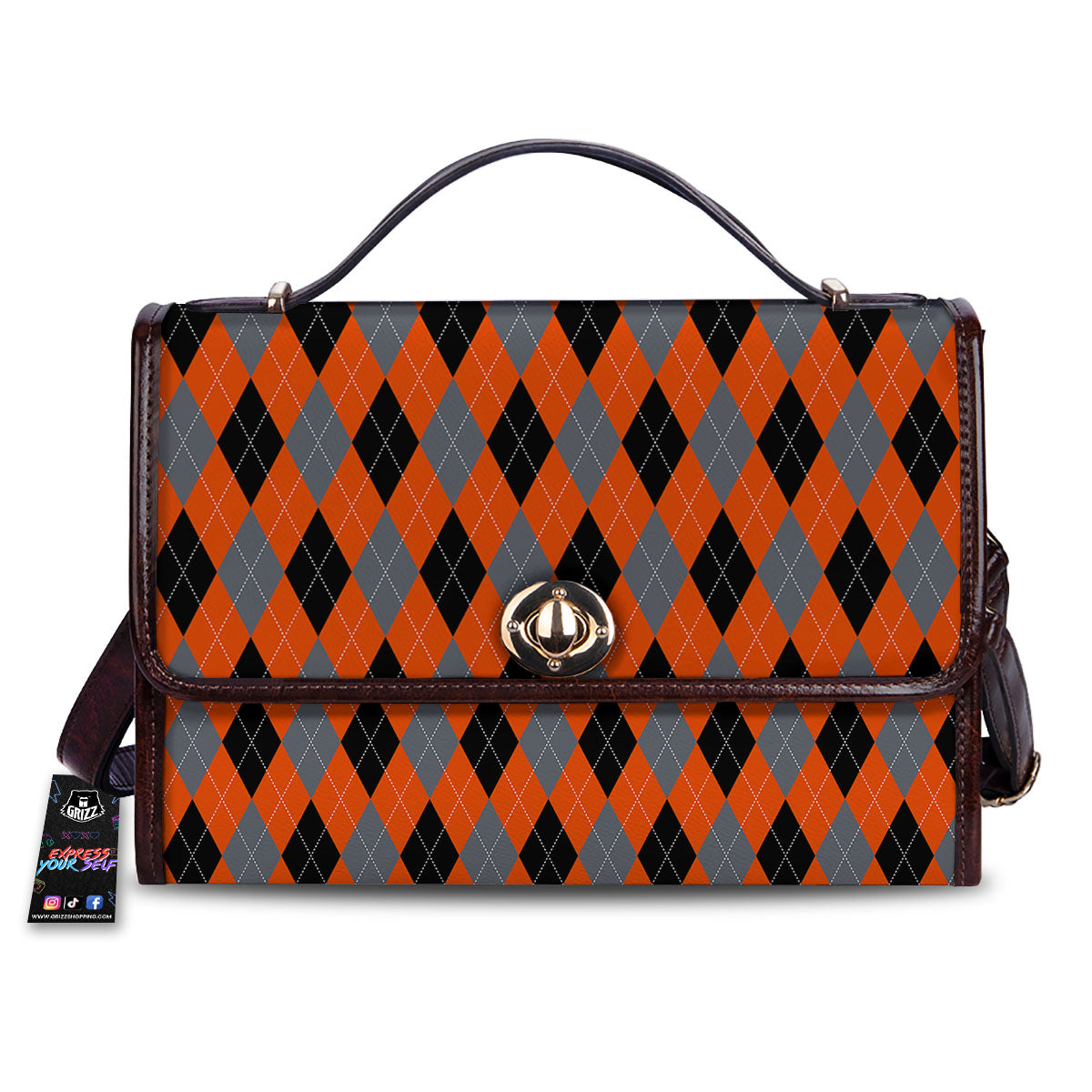 Black And Orange Plaid Print Pattern Women’s Satchel Bag