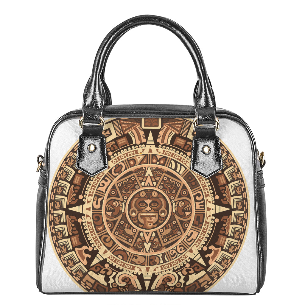 Black And White Viking Yggdrasil Print Shoulder Handbag