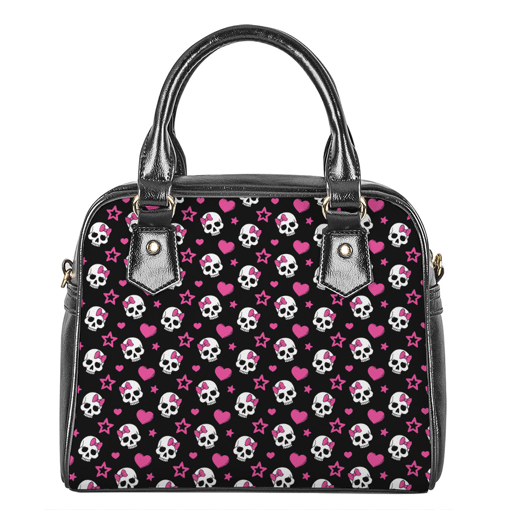 Black And White Wicca Evil Skull Print Shoulder Handbag