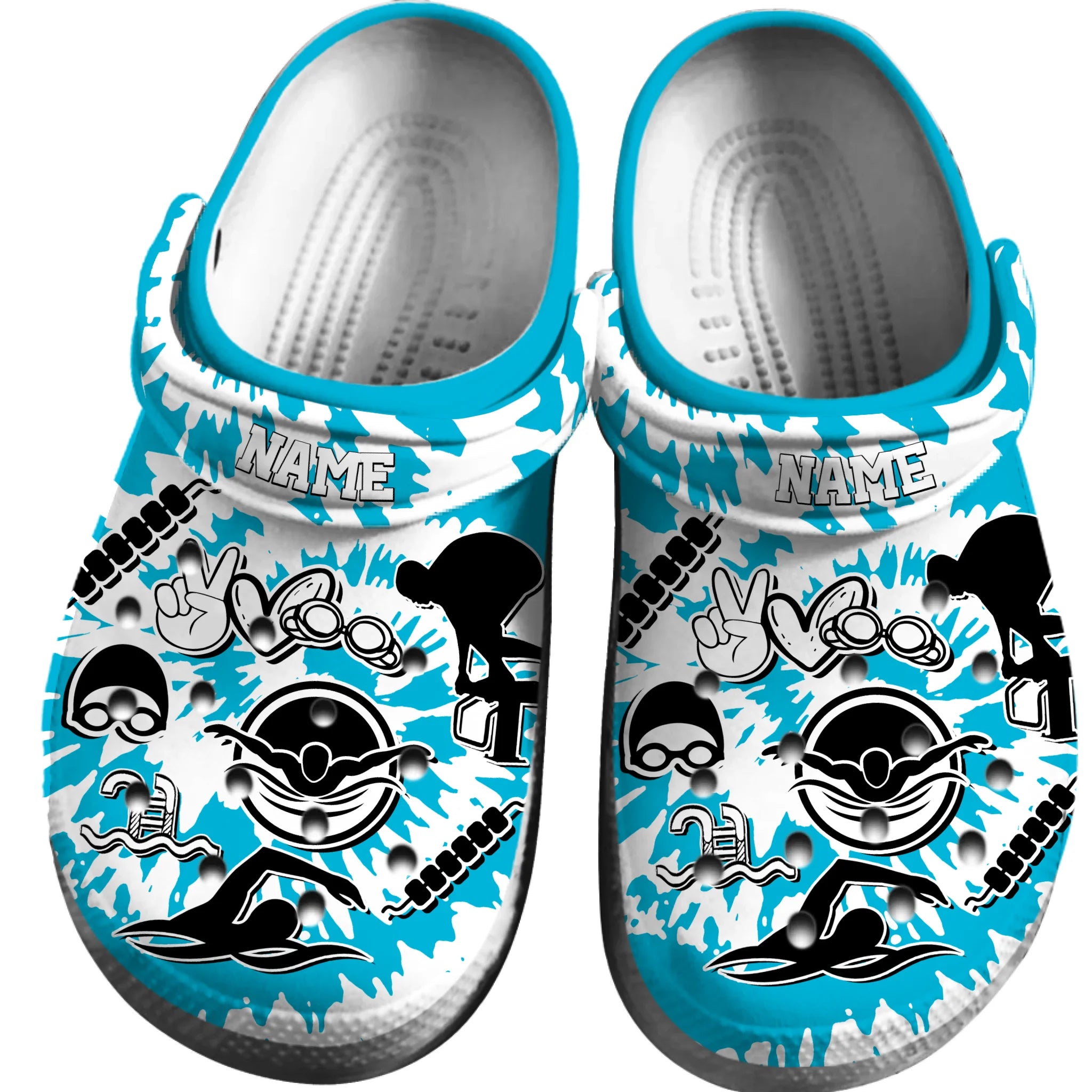 Black Graffiti Swimming Sport Custom Crocs And Clogs Shoes Printed For Men Women And Kids