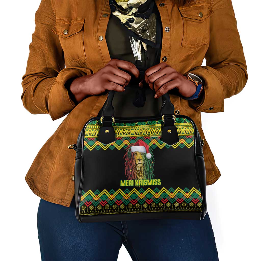 Black Jamaican Christmas Shoulder Handbag Reggae Lion With Kente Pattern
