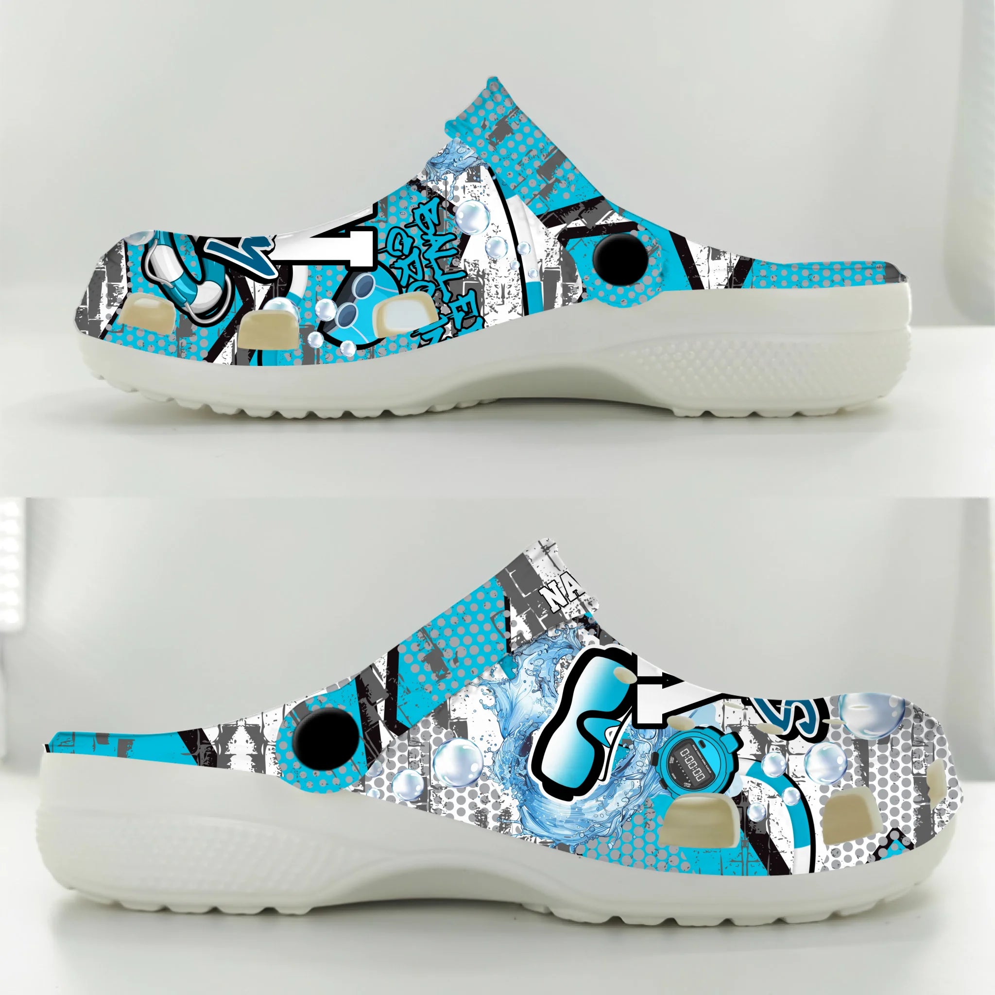Blue Graffiti Swimming Sport Custom Crocs And Clogs Shoes Printed For Men Women And Kids