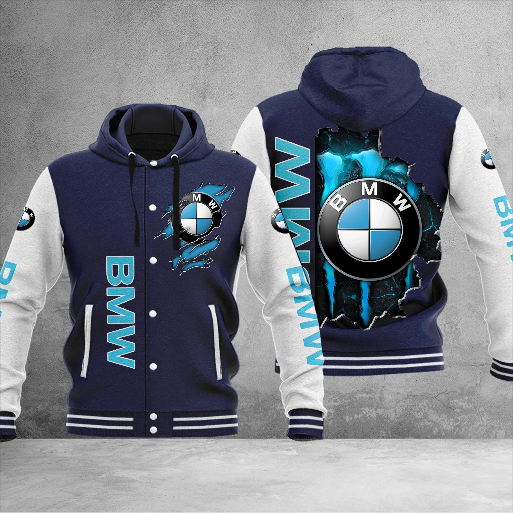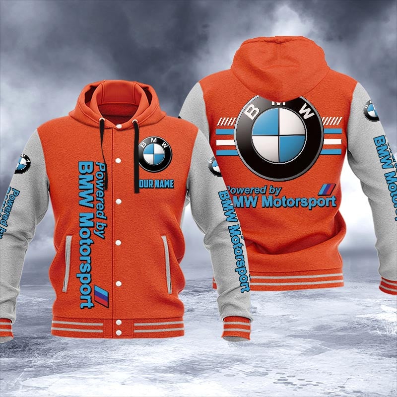 BMW Custom Name Hooded Baseball Jacket For Fans Black