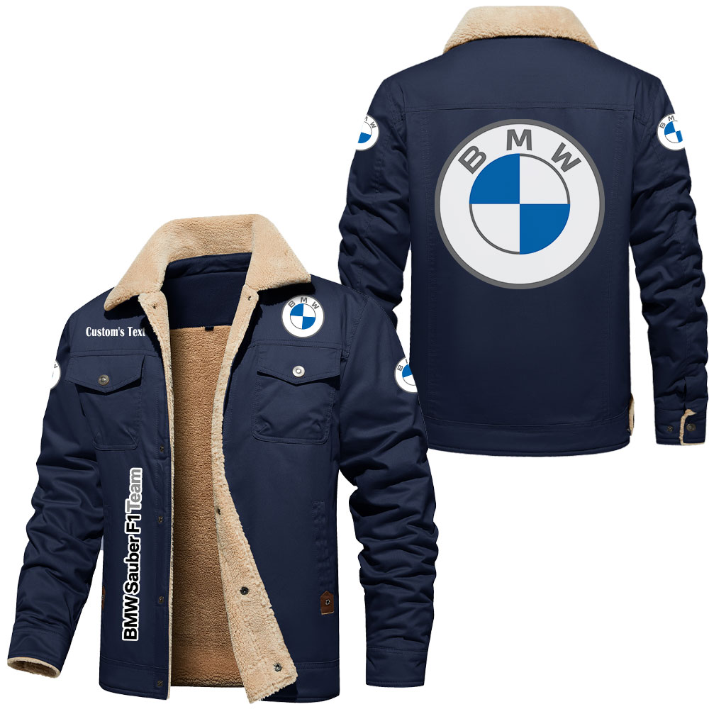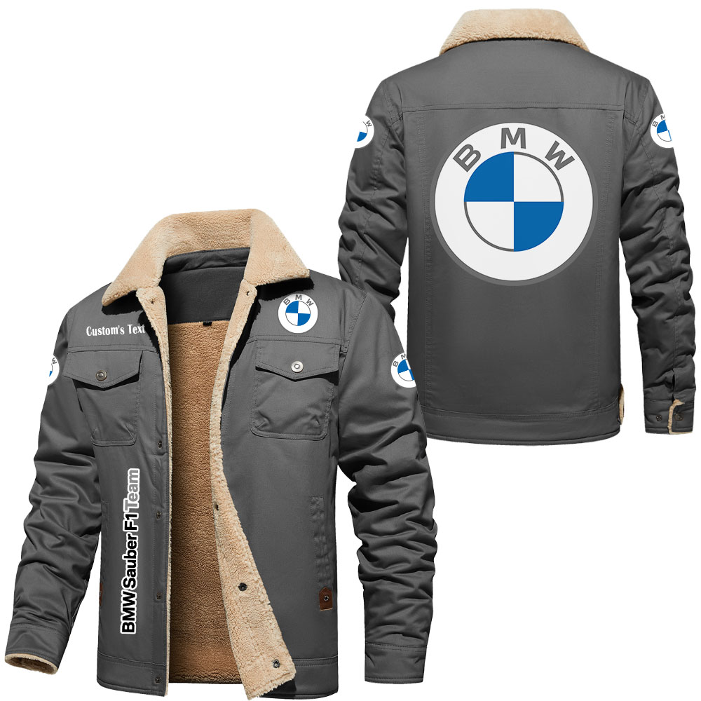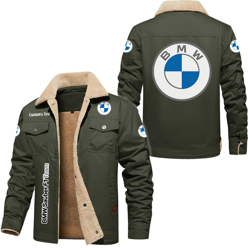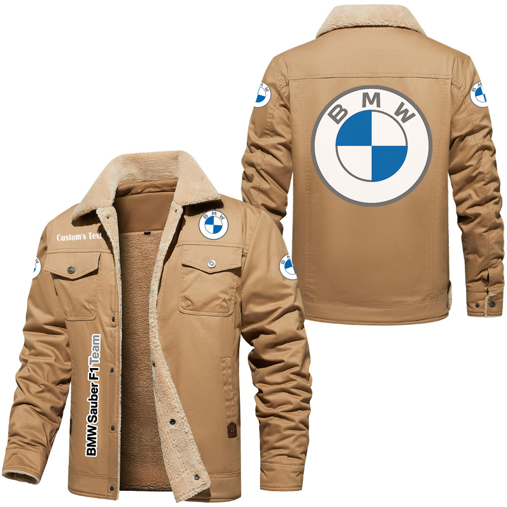 Bmw F1 Logo Custom Text Cargo Fleece Lined Cotton Jacket