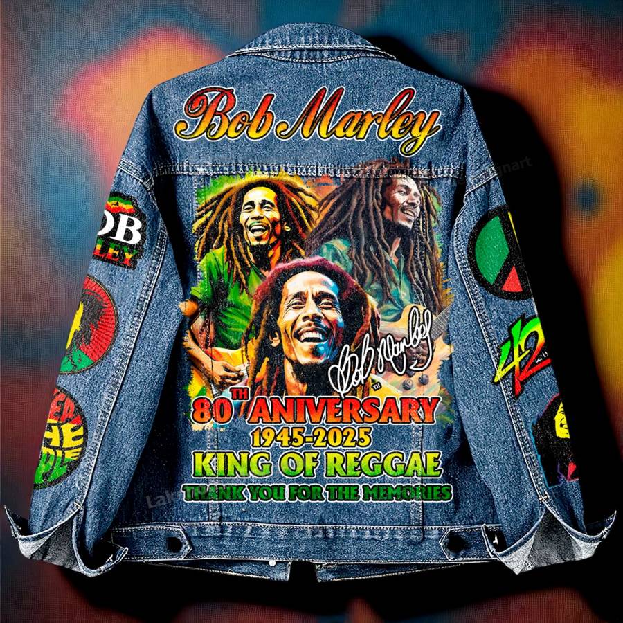 Bob Marley 80Th Anniversary King Of Reggae Denim Jacket For Men And Women