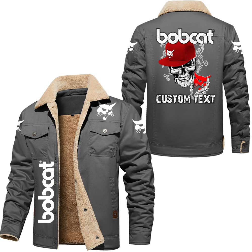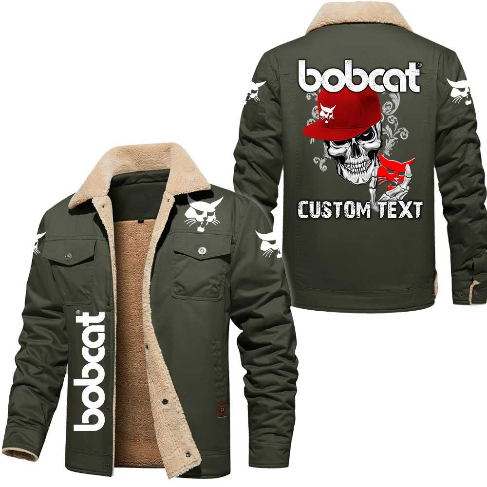 Bobcat Company Skull Logo Custom Text Cargo Fleece Lined Cotton Jacket