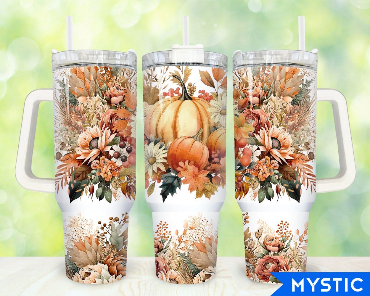 Boho Floral Pumpkin Custom Stanley Quencher 40Oz Stainless Steel Tumbler With Handle