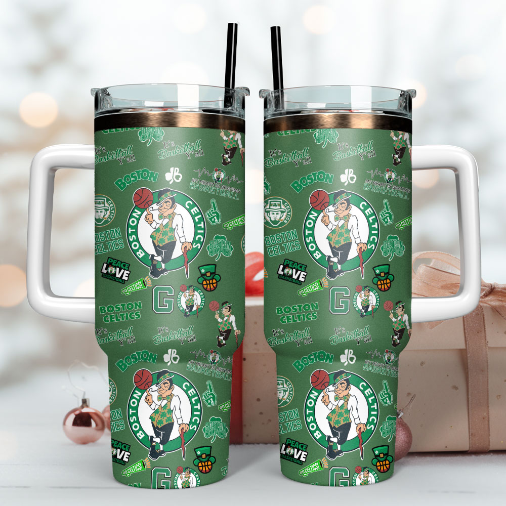 Boston Celtics Basketball Nba Sport Custom Stanley Quencher 40Oz Stainless Steel Tumbler With Handle