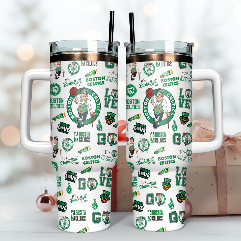 Boston Celtics Basketball Team Nba Custom Stanley Quencher 40Oz Stainless Steel Tumbler With Handle