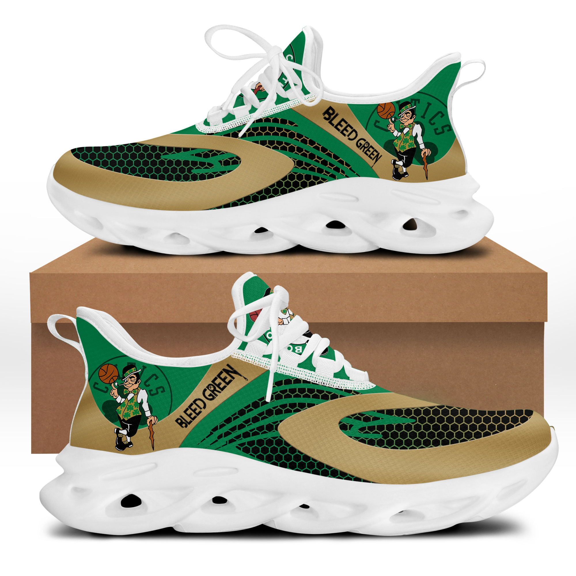 Boston Celtics Max Soul Shoes Sneakers Printed White And Black Sole For Men And Women