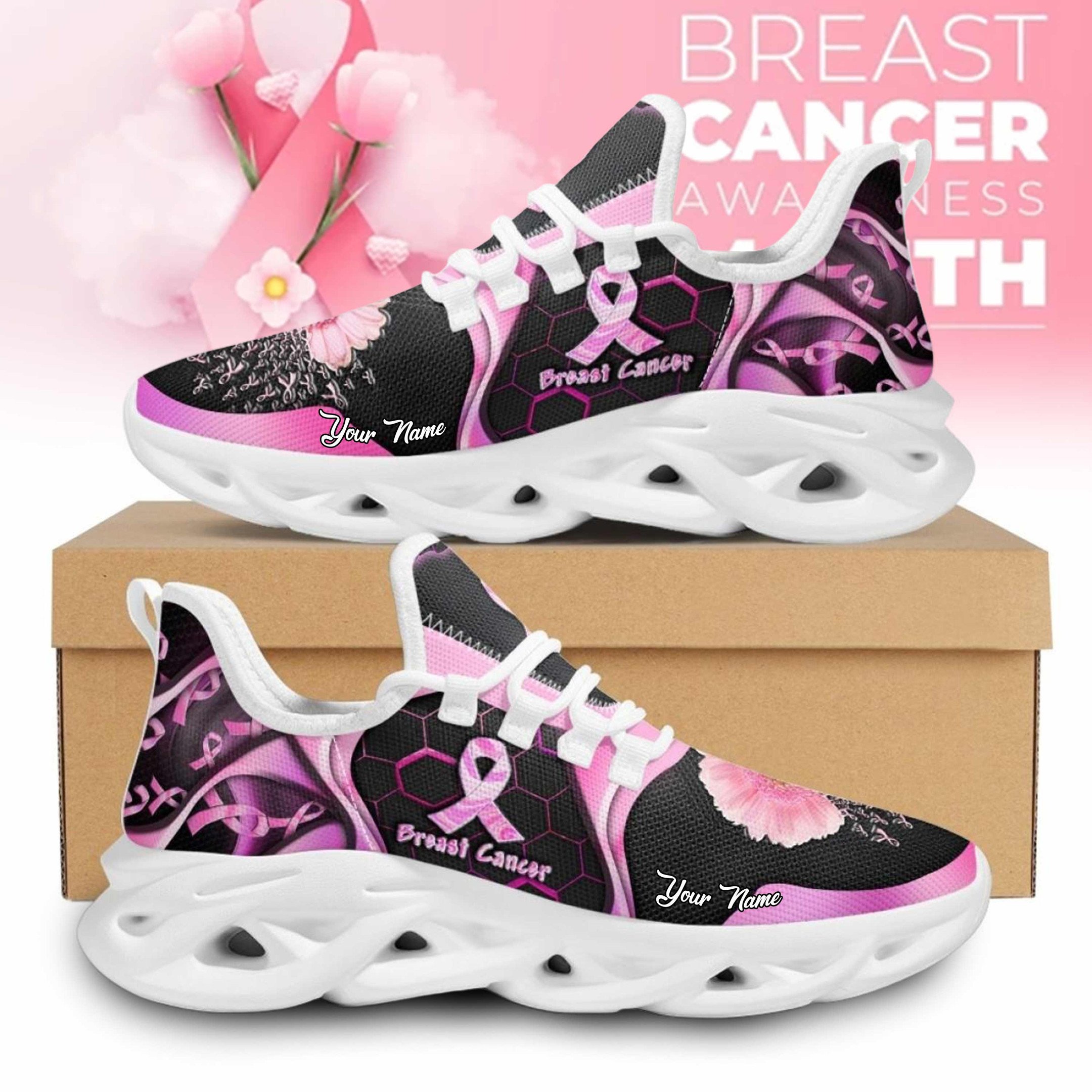 Breast Cancer Awareness Max Soul Shoes Sneakers Printed White And Black Sole For Men And Women Max Soul Shoes Sneakers Printed White And Black Sole For Men And Women