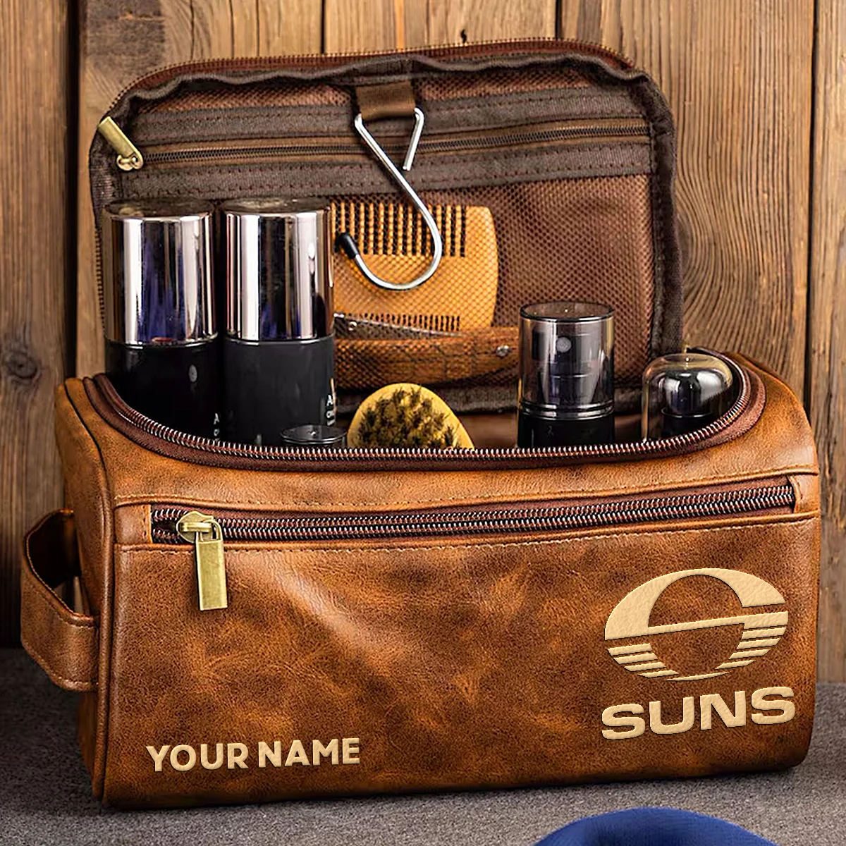 Brisbane Lions AFL Exclusive Logo Personalized Leather Toiletry Bag, Fishing Leather Toiletry Bag