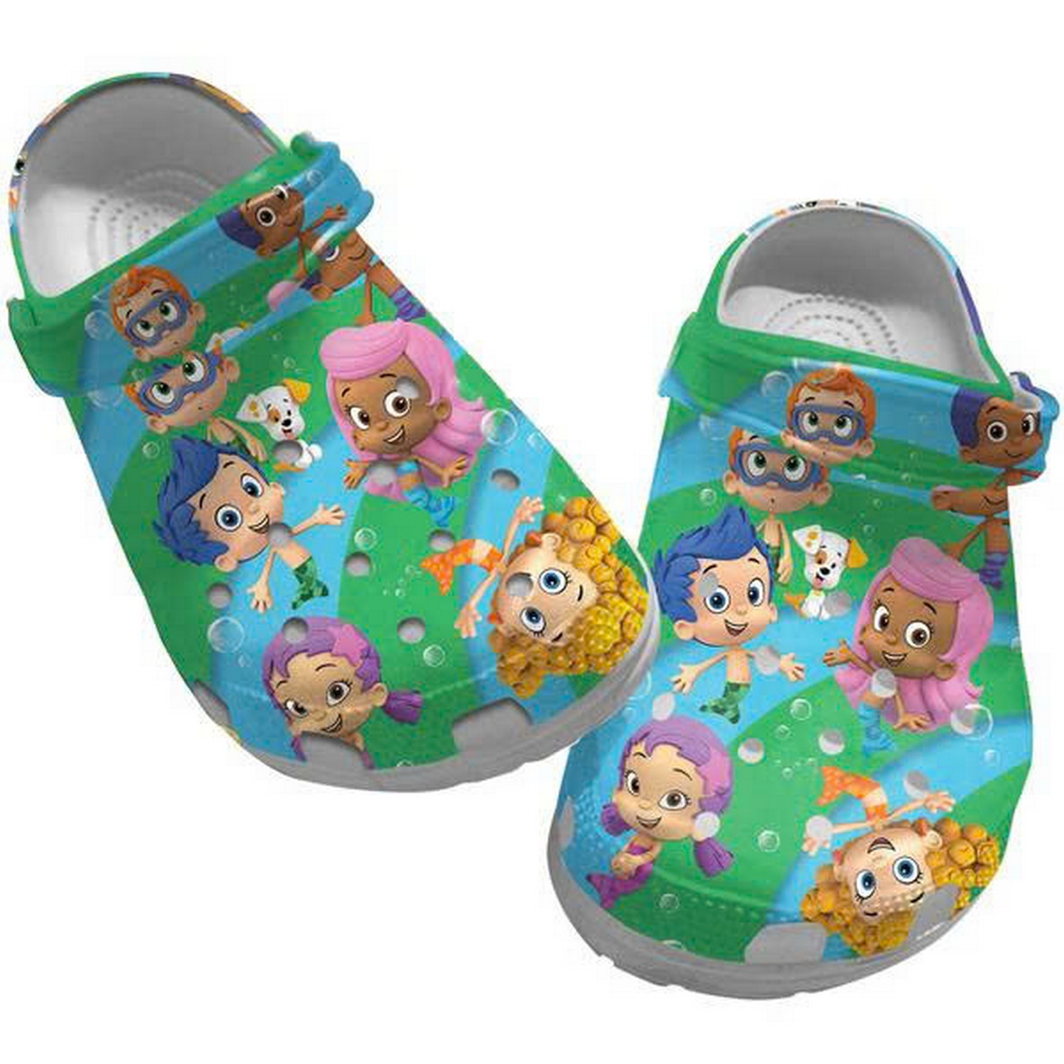 Bubble Guppies Characters Playingfull On Blue Water Flow Clogs For Kids And Adults