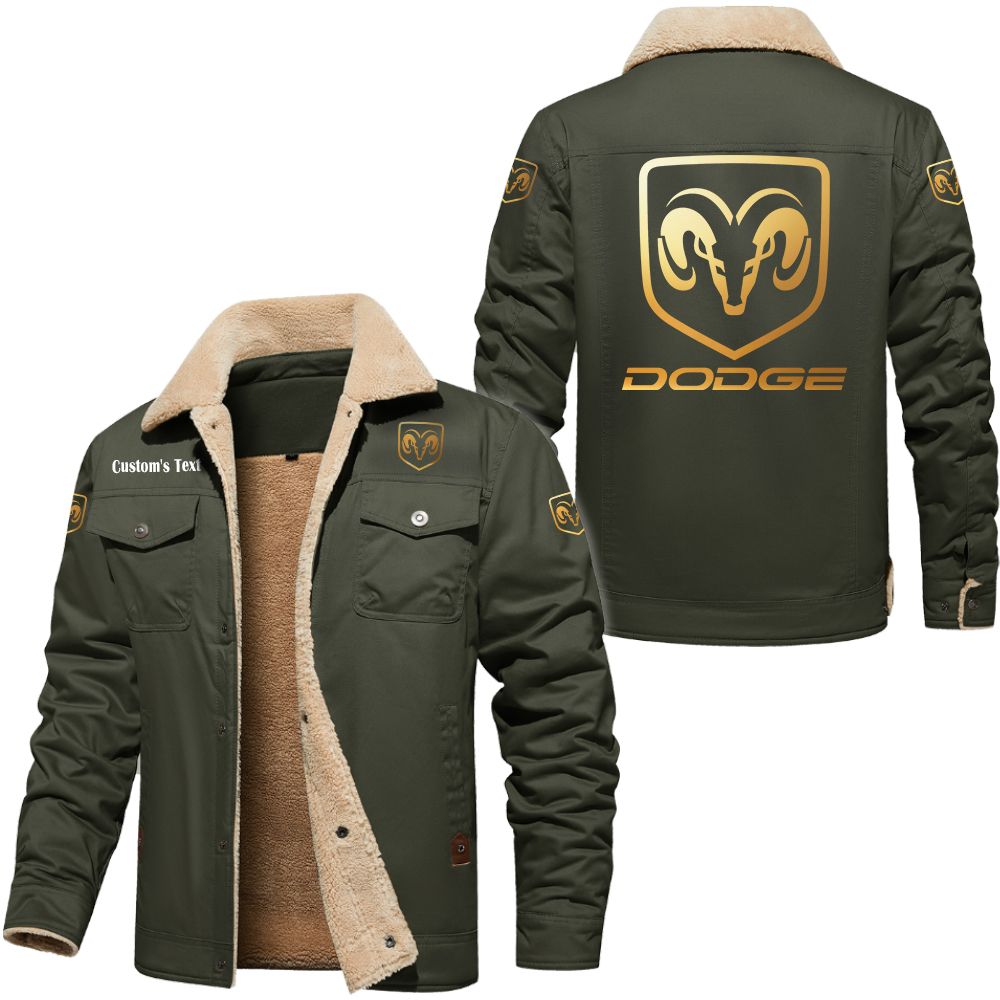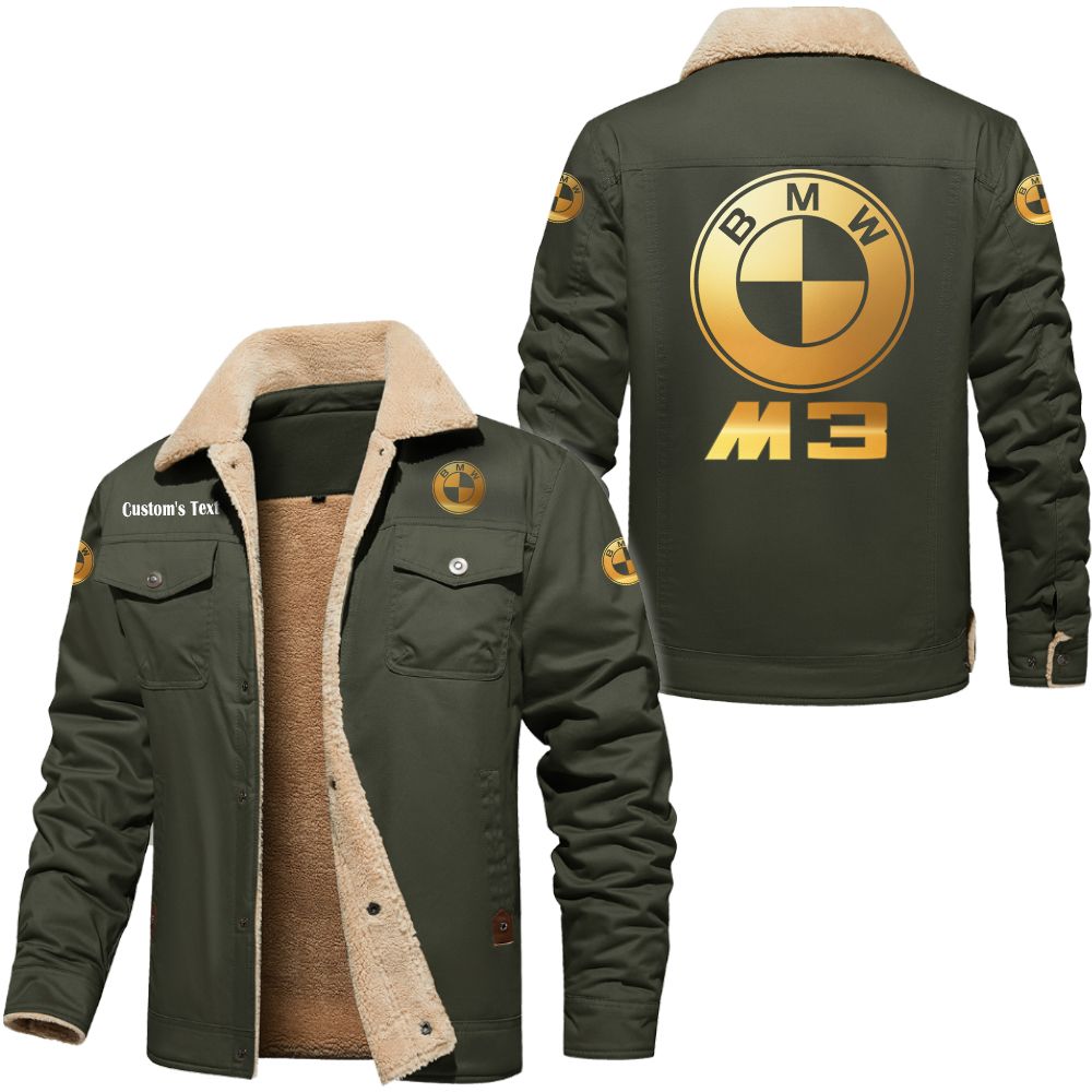 Buell Motorcycle Golden Logo Custom Cargo Fleece Lined Cotton Jacket Army Green