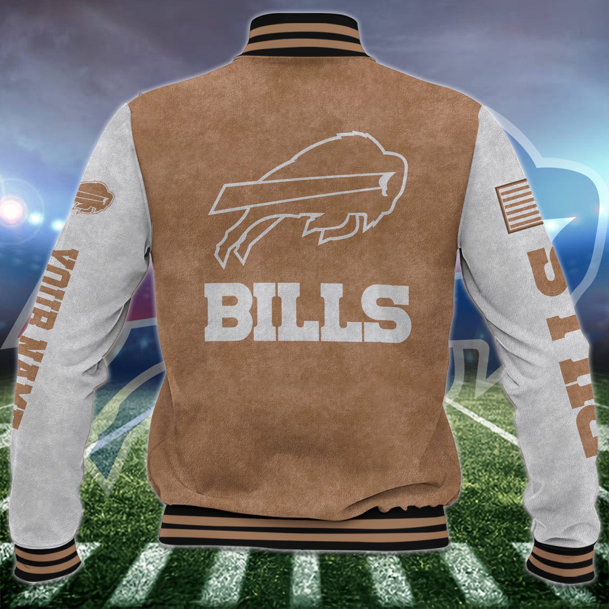 Buffalo Bills Brown Baseball Jacket Custom Name
