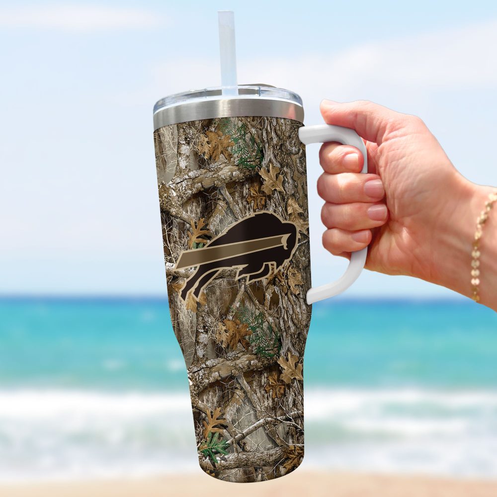 Buffalo Bills Nfl Hunting Realtree Custom Stanley Quencher 40Oz Stainless Steel Tumbler With Handle