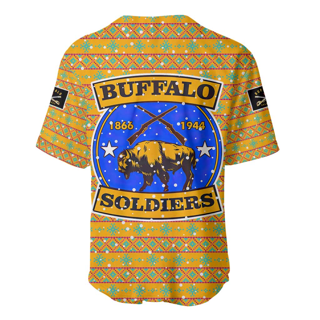 Buffalo Soldiers Christmas Baseball Jersey Yellow Cartoon Buffalo Santa Hat Design