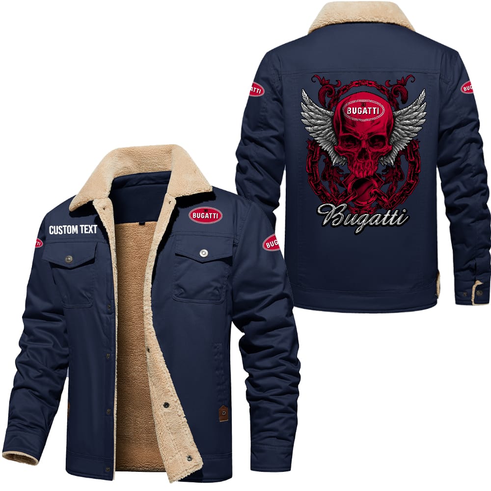 Bugatti Custom Name Skull Design Cargo Fleece Lined Cotton Jacket