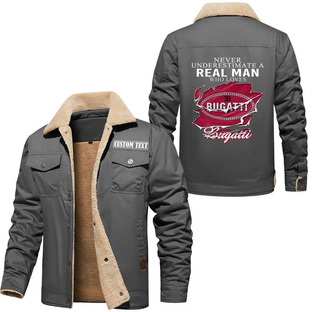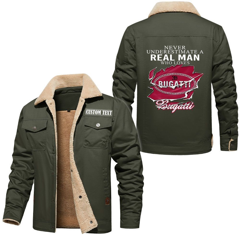 Bugatti Logo Custom Name Cargo Fleece Lined Cotton Jacket A Real Man Who Loves Personalized Outerwear