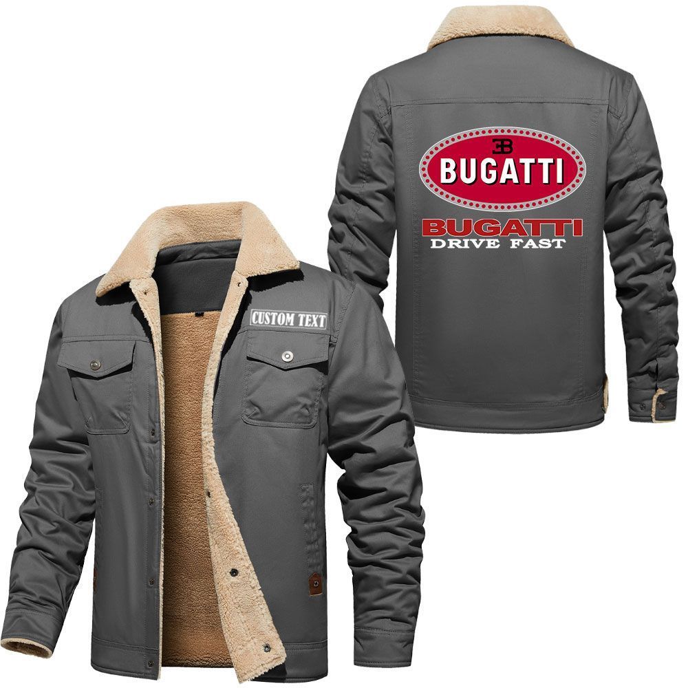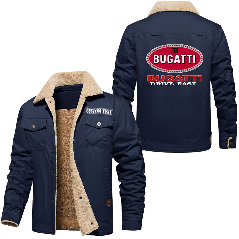 Bugatti Logo Custom Name Cargo Fleece Lined Cotton Jacket Stylish Warm Personalized Outerwear
