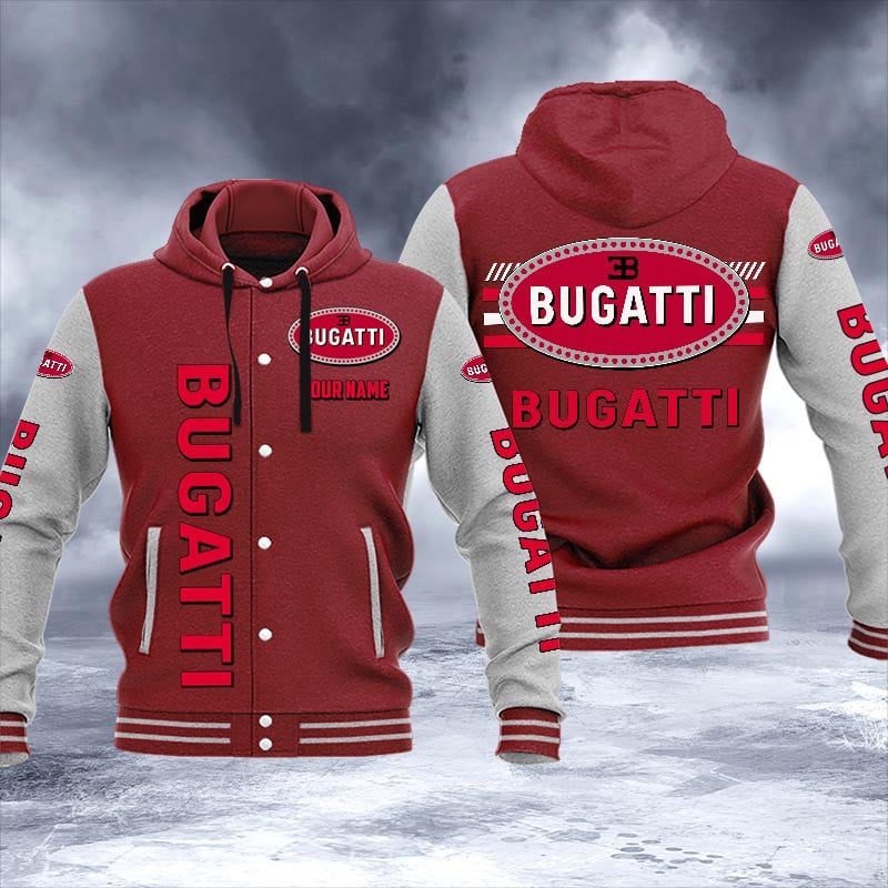 Bugatti Personalized Hooded Baseball Jacket For Fans Pink