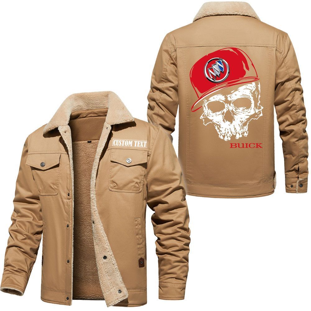Buick Logo Custom Name Cargo Fleece Lined Cotton Jacket Personalized Outerwear with Skull Design
