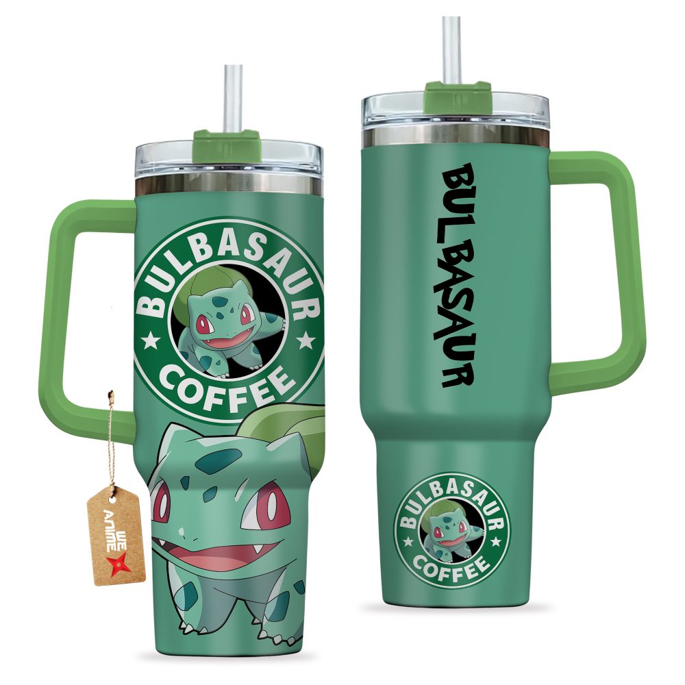 Bulbasaur Coffee Pokemon Anime Custom Stanley Quencher 40Oz Stainless Steel Tumbler With Handle